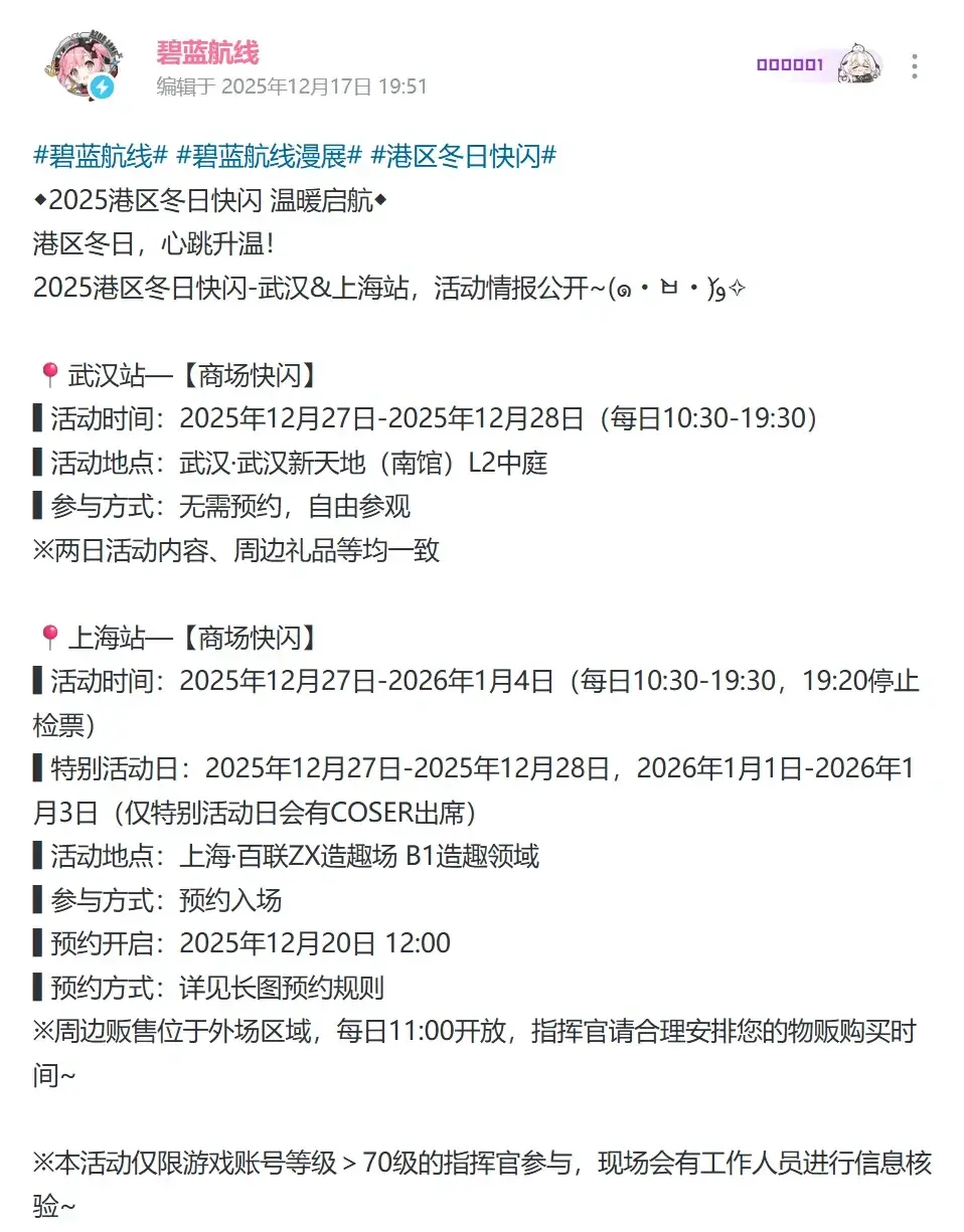 今年的“2025港区冬日快闪”如约而至,在广州、武汉、上海三个城市或周边的指挥官有福了。