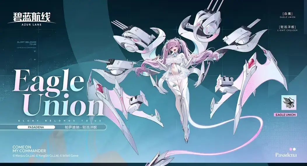 其中最为瞩目的,该是已经陪伴了指挥官们多年,如今从沉湎中醒来的“列克星敦II”。她的整体形象正如绰号“蓝色幽灵”所示,以典雅、幽深的蓝色为主色调,而淡粉色的长发又为画面掺上了几分热情暖意,让整幅画面不会“寒意十足”。配上环绕身侧的流线型甲板、单手上扬的动作,一阵神秘、高贵的气场扑面而来。既延续了老角色的情感记忆,也在气质上完成了一次成熟蜕变。