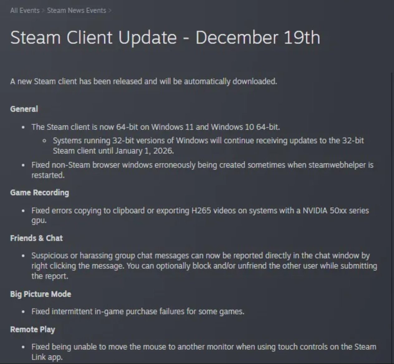 Valve表示,此举旨在提升性能并适应用户群体分化。对占绝大多数的64位系统用户而言,新客户端能更高效地利用系统资源,如调用更多内存,从而获得更佳性能。然而,仅占Steam总用户数约0.01%的32位系统玩家将无法再获得客户端的任何安全更新或官方技术支持。Valve称绝大多数用户升级至64位系统并无障碍,仅少数使用2004年或更早老旧硬件的用户可能面临困难。值得玩家注意的是,此次变更仅针对Steam客户端程序本身,已购买的32位游戏在64位系统上仍可正常运行。Valve此举旨在优化主流用户体验,并推动PC游戏生态向更现代的64位标准靠拢。