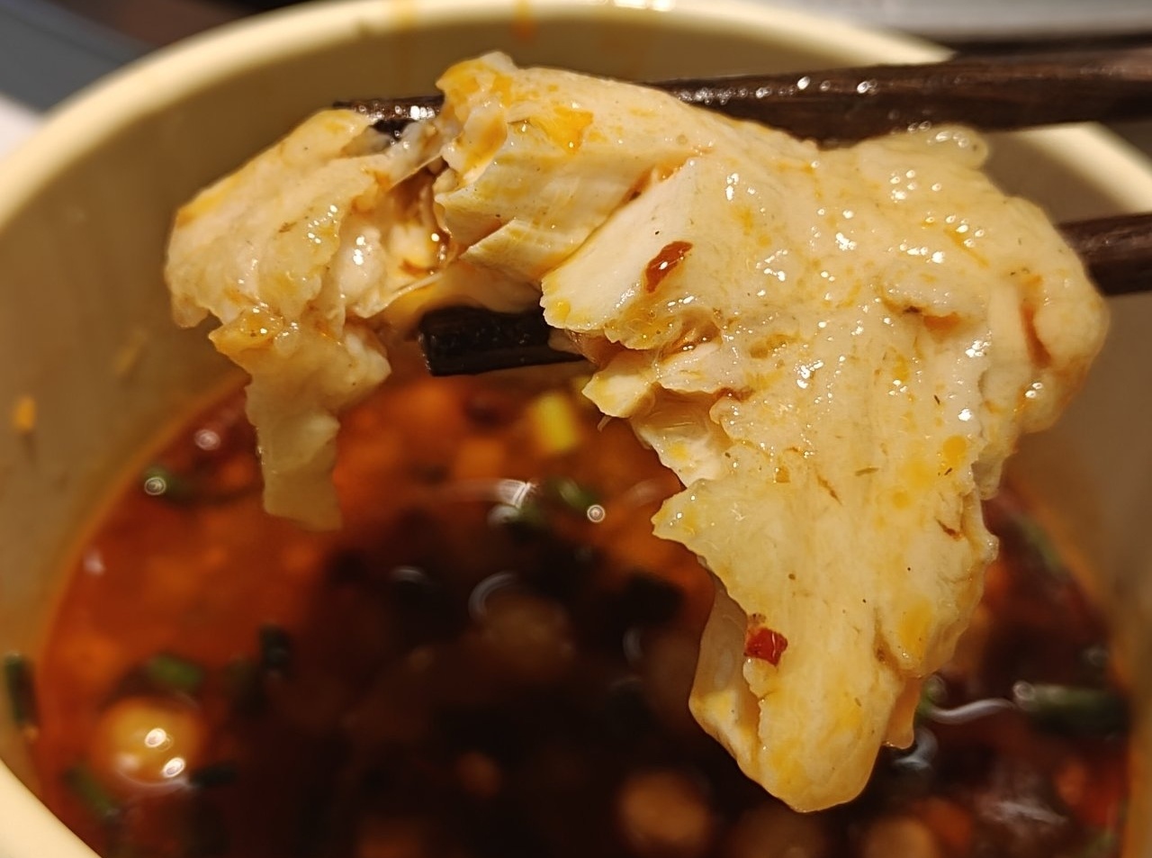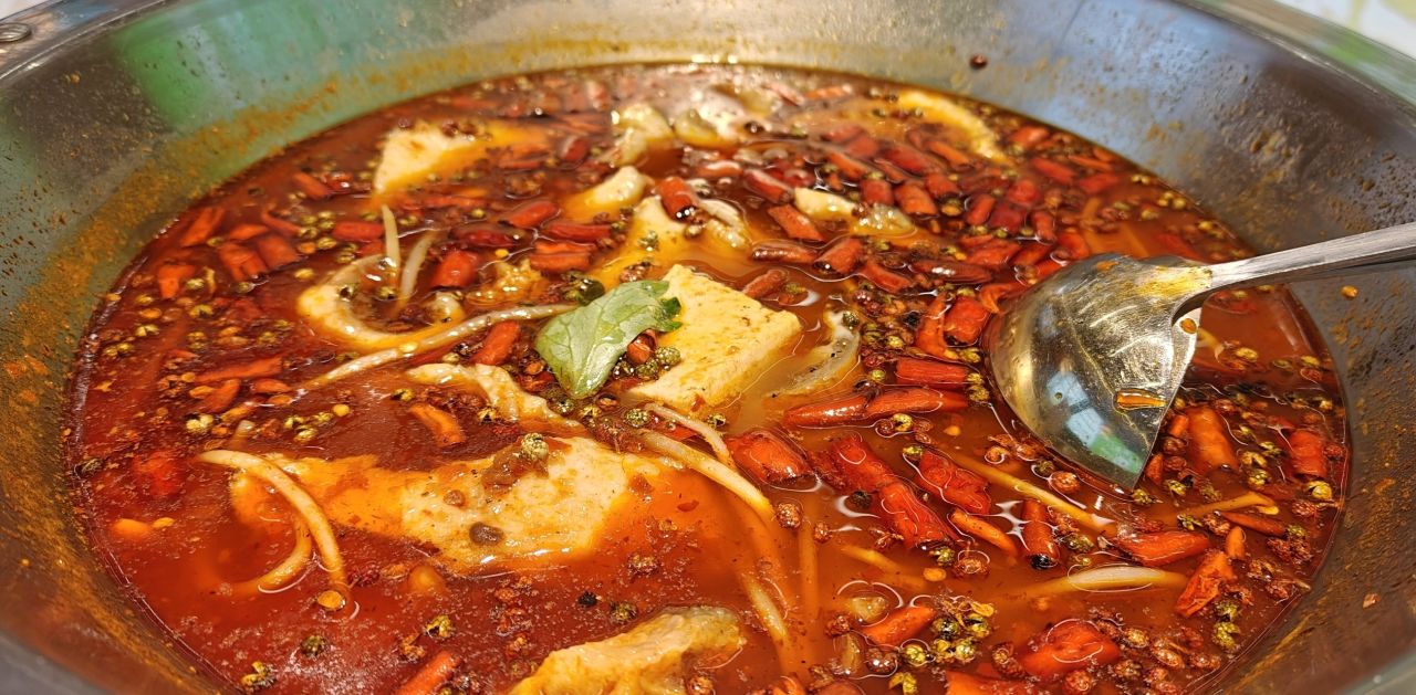 單口味的鍋底19.9,鴛鴦鍋29.9,我喫的兩次都點的辣鍋,整體上是川渝魚火鍋那個味道,不過是減料版,香味、麻辣味和油的量要少一些,辣度我覺得不怎麼辣,麻味會比辣味重一些。還有椒麻、酸菜、番茄等鍋底,我沒嘗試過。