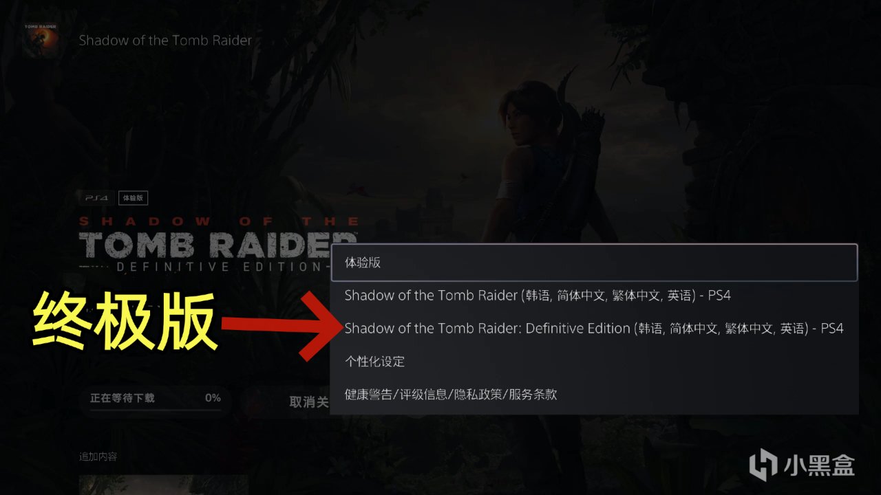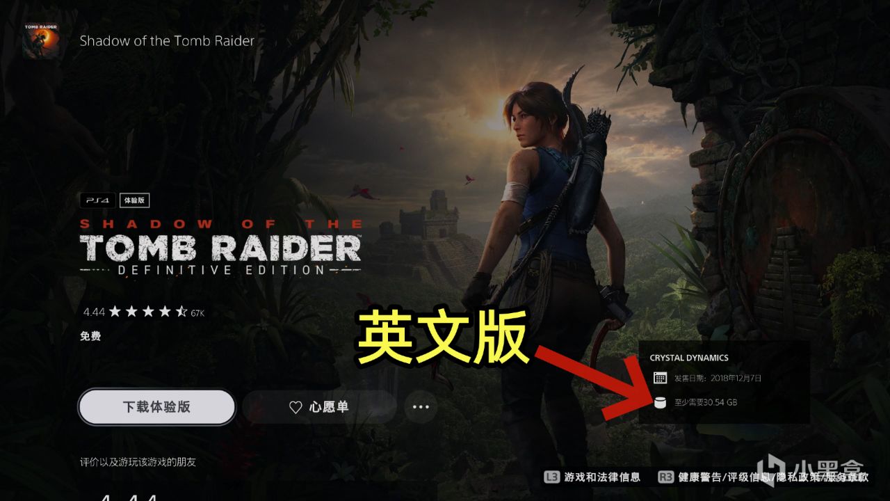 具体领取方法说下:先在商店搜索栏输入“tomb”,找到《古墓丽影 暗影 终极版》。点击游戏详情页的三个小圆点,会弹出两个体验版选项,这里要注意区分——咱们得选中文版体验版,它的容量是23GB;另外那个30GB的是英文版,别选错了。