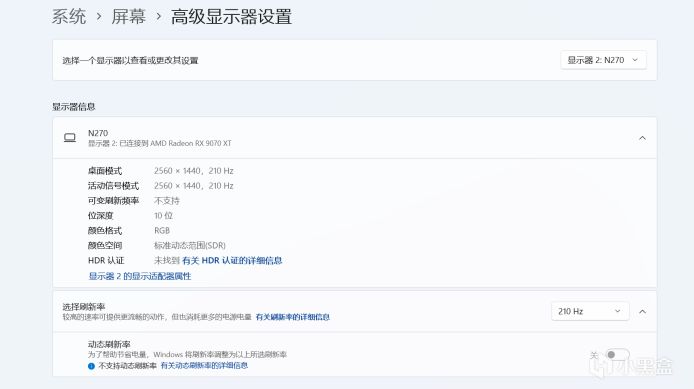 我主顯示器是一塊4k170hz的,副屏是2k210hz的。都是27英寸。