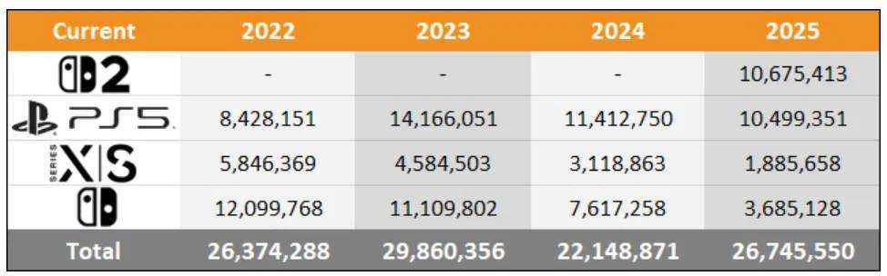 2025年对Xbox而言堪称寒冬,Xbox Series X|S全球销量仅180多万台,创下历史新低。这一数字不仅远低于PS5的一千多万台,甚至不及上市近十年的Switch(368万台),在主机竞争中明显落后。