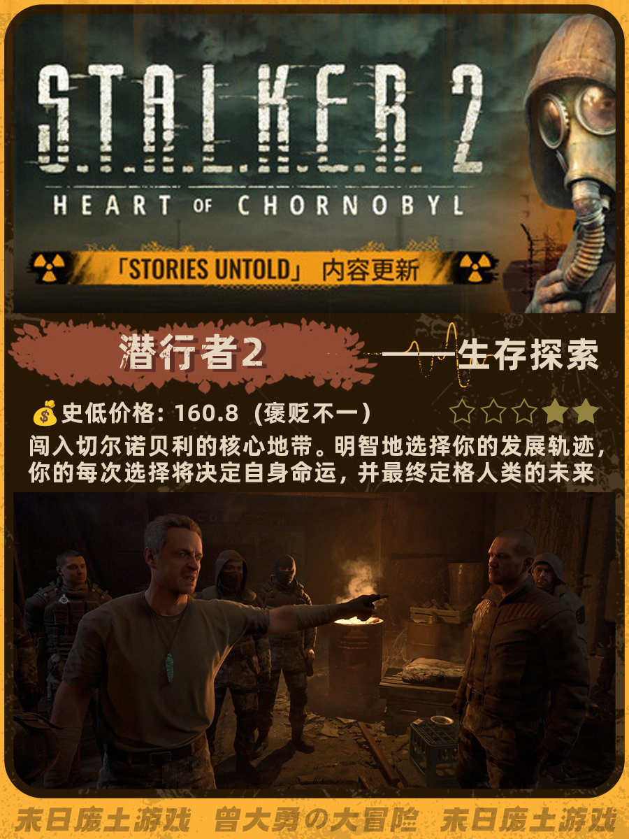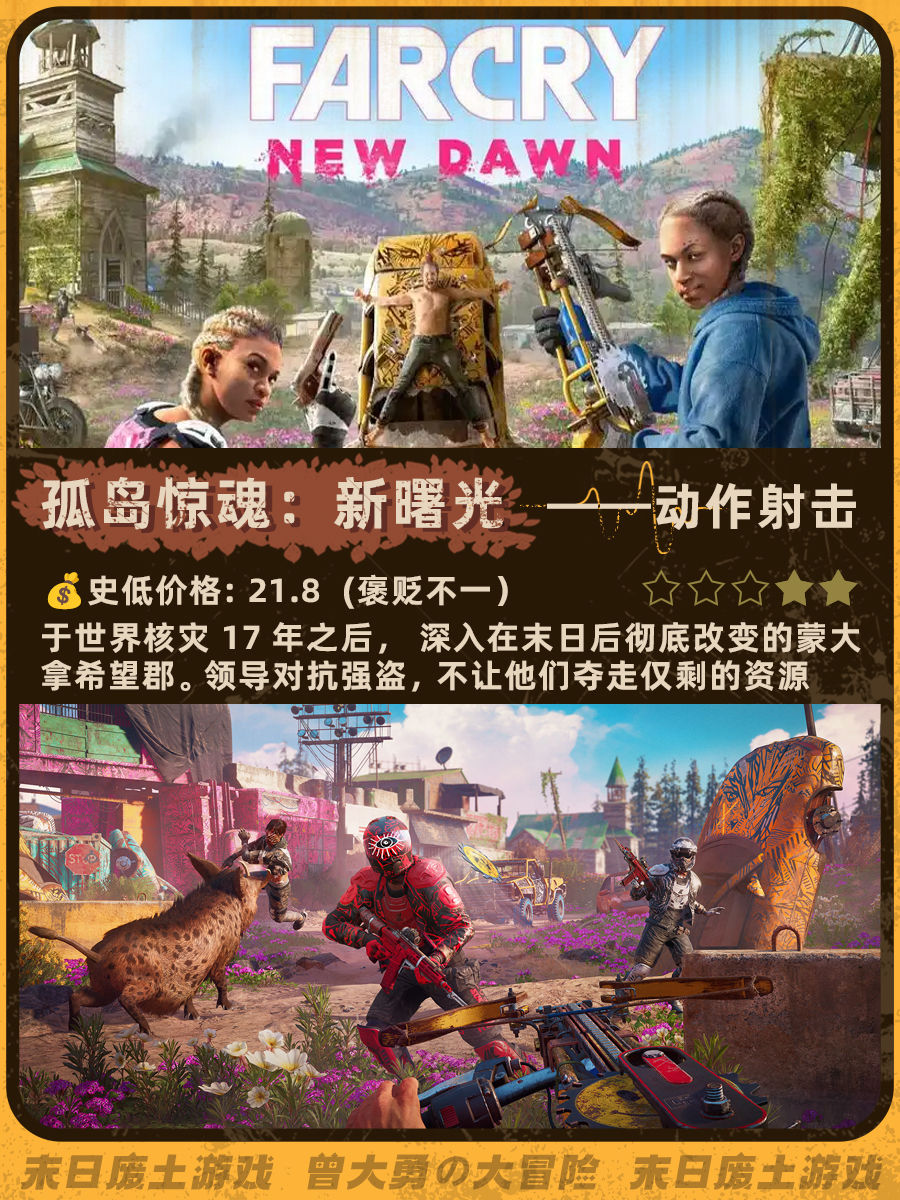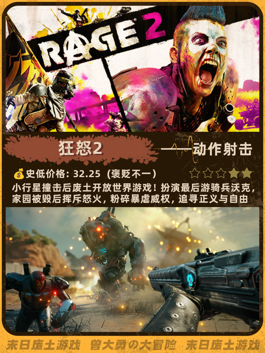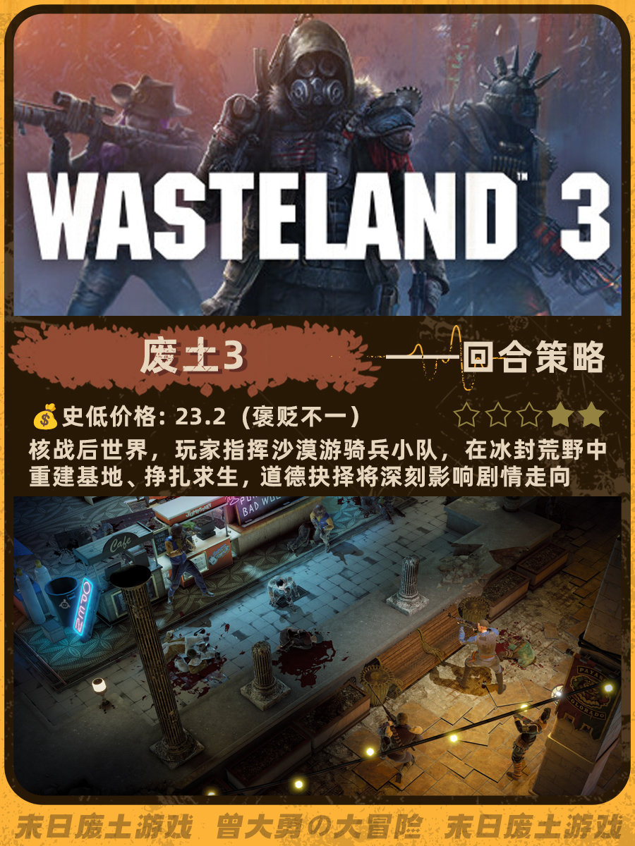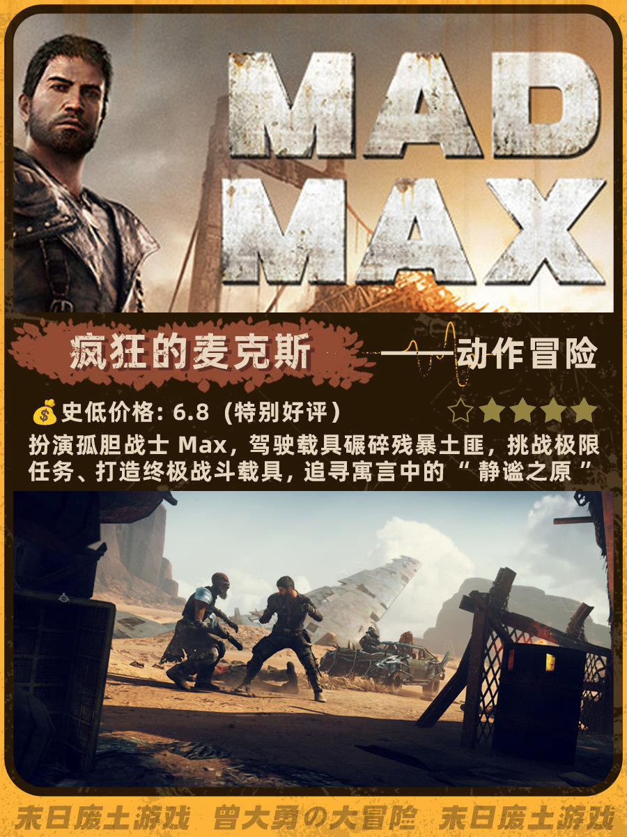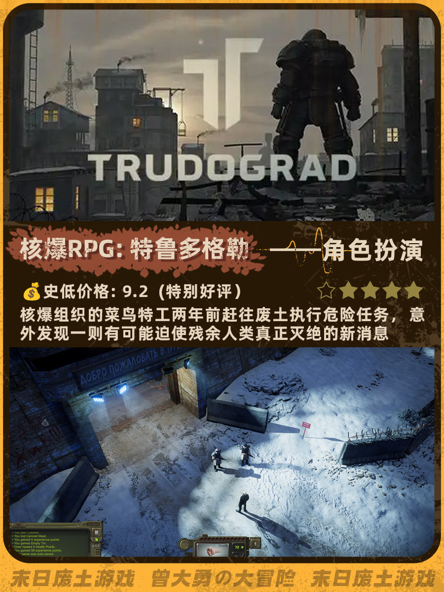 特别喜欢《辐射4》和《地铁离去》的末日荒芜感,去搜了一下发现做这个类型的帖子真的太少了......这次就搜罗了一下网上评价还不错的末日废土风游戏。图里包含史低价格、玩家评分、游戏概述