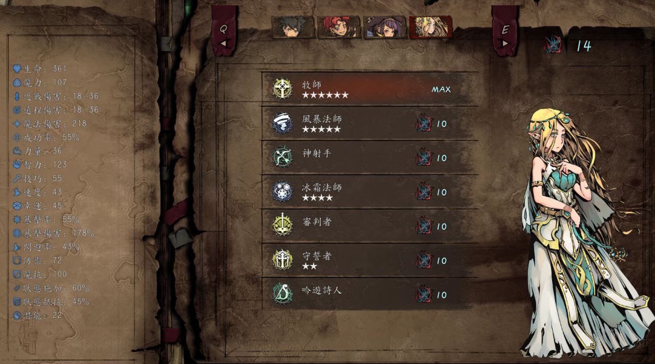 然後就是小技能,一個職業它非常體現特色的地方,不一定是在主要的能力上,而是在一些特殊情景下十分好用的小技能。它沒有特別厲害,但是就是某些情景特別好用,比如說必中這個小技能,在命中率足夠的情況下時候用處有限,但是遇到閃避怪就非常強力,這也能大大地提升職業的獨特性。