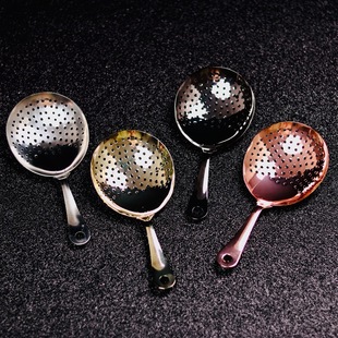 朱利普滤冰器:这是一个单纯的、带长柄的穿孔不锈钢滤网,形似铲子或勺子。主要用于搭配搅拌杯,过滤较大的冰块或薄荷叶等。