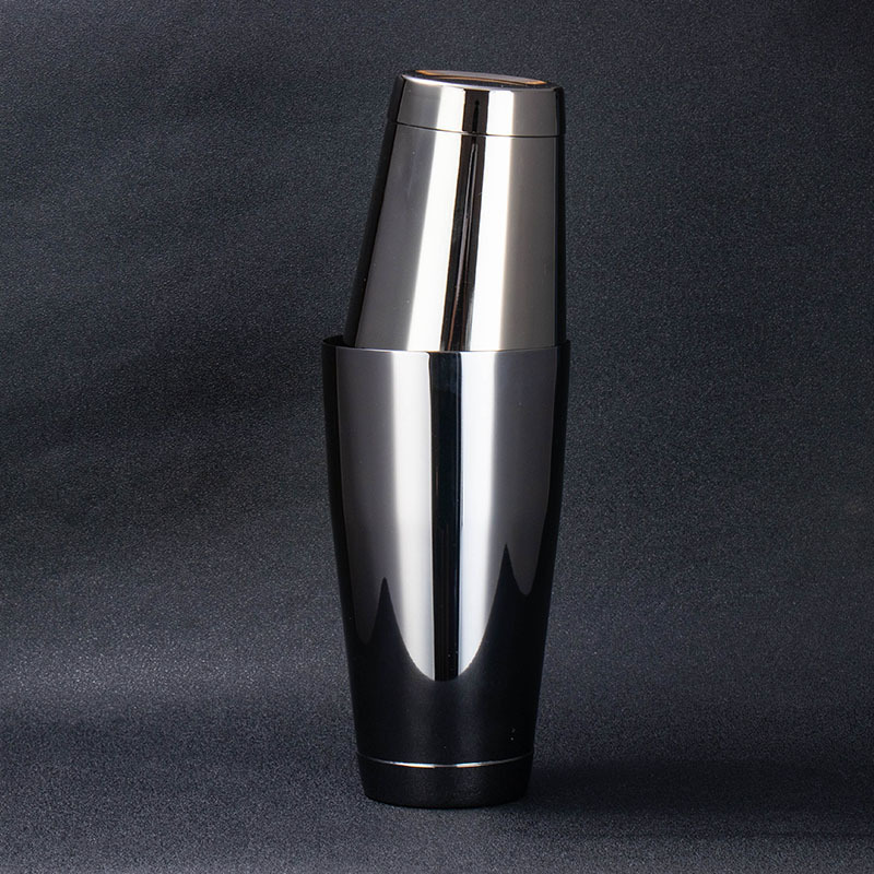 波士顿雪克壶:由两个独立部分组成——一个金属壶身(通常是雪克杯)和一个金属杯或者玻璃杯(通常是波士顿杯),两者通过“卡扣”方式扣合。金属部分多为不锈钢材质,玻璃杯通常是加厚的品脱杯。
