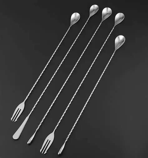 典型的吧勺是一根长柄勺子,长度通常在30厘米到45厘米之间,以适应不同深度的调酒杯和波士顿壶。