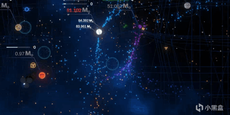 进化的代价:随着你质量的增加,你的引力范围会指数级扩大,但你也将会遇到更加恐怖的对手。你会经历从原恒星到蓝巨星,最终成为超大质量的黑洞。期间伴随着无数恒星的死亡和绚烂的超新星爆发,引力波的狂乱涟漪。