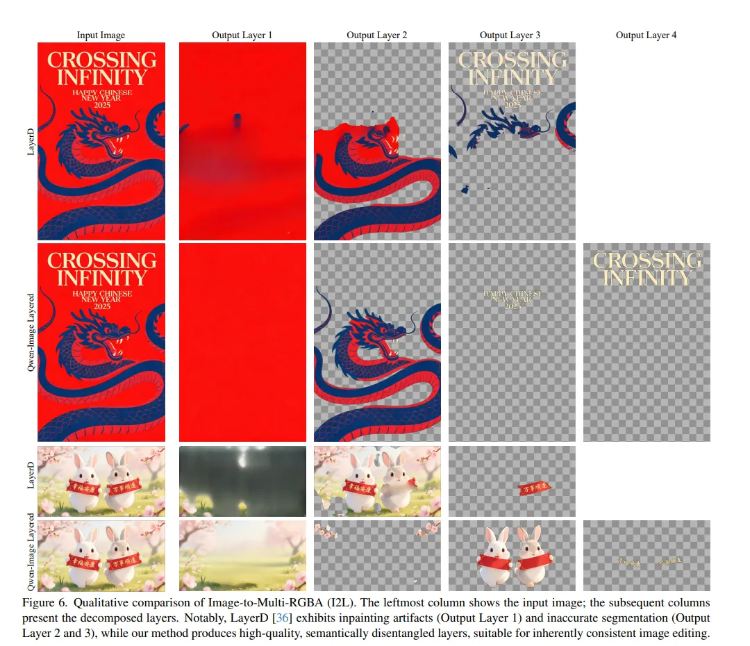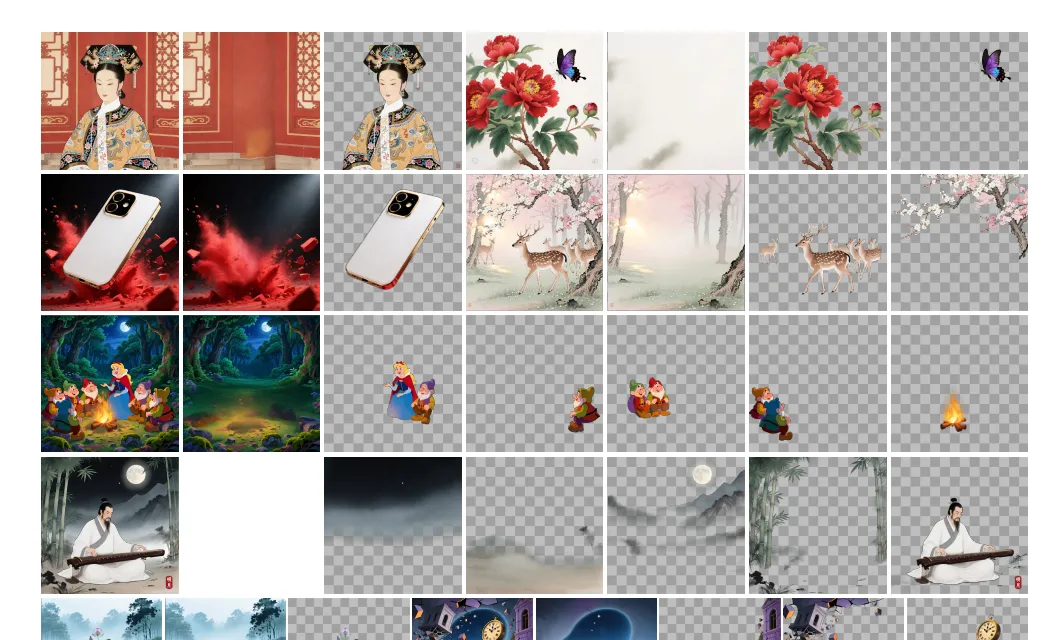 阿里这个新模型则是在内部实现了图层拆解,它能把一张平整的图片强行剥离成若干个 RGBA 图层。
