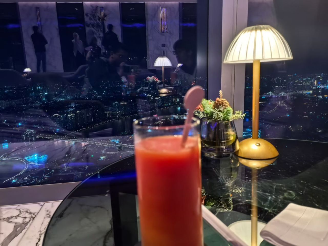 ⑨四季酒店:这个酒店相信大家在网上都应该刷到过,第一次见的时候真的是把我震惊了,真的好震撼,大家可以免费坐到70层,如果你想要坐在窗边观景的话,就要像lz一样点两杯100r的饮料才能坐,大家也可以坐到100层,有一个酒吧,给钱同样也可以进去坐