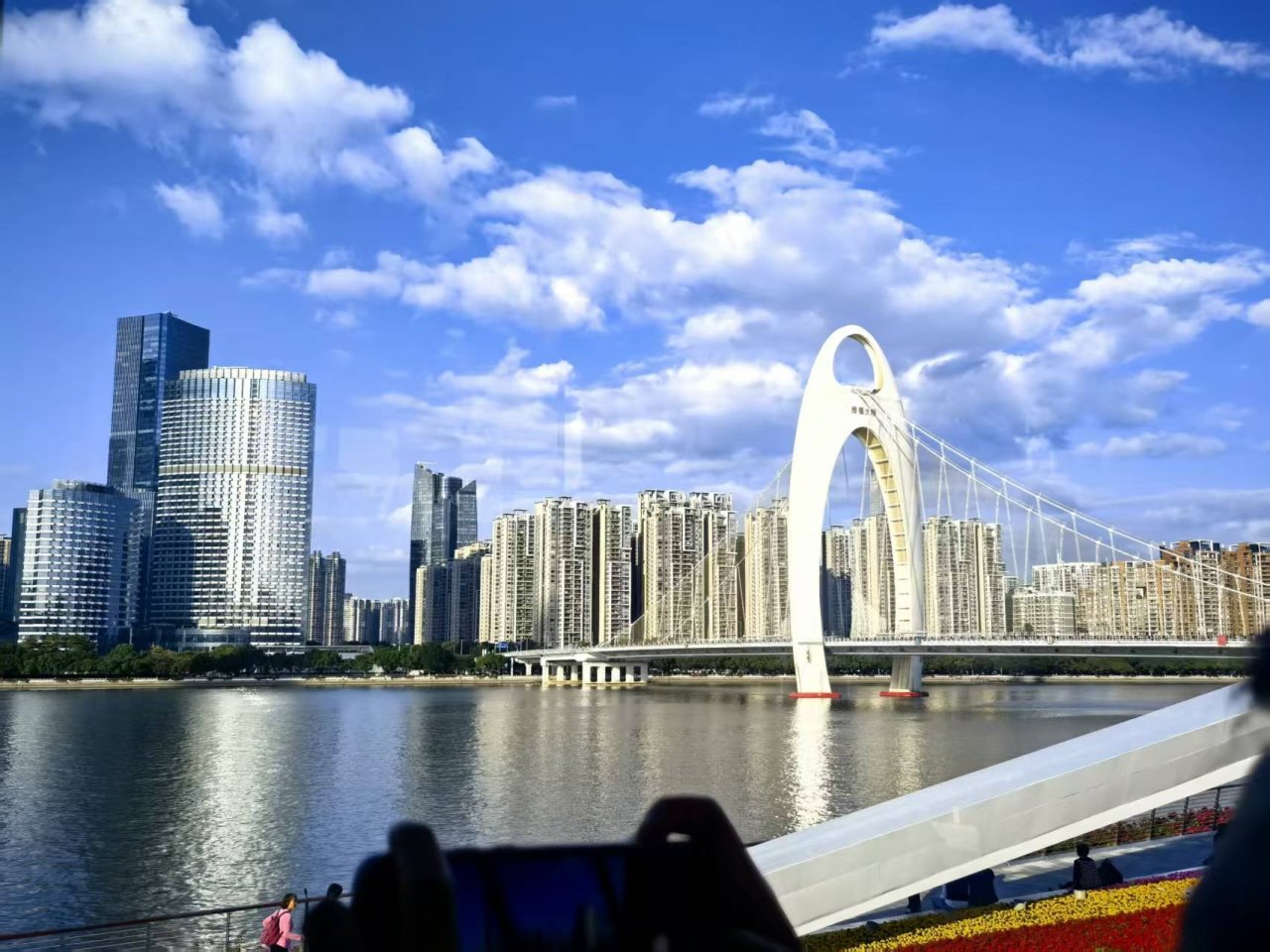 ④广州有轨电车&海心桥:坐上有轨电车,可以欣赏沿途风光,它也被称为最美七公里,坐到广州塔终点后可以去海心桥上看看