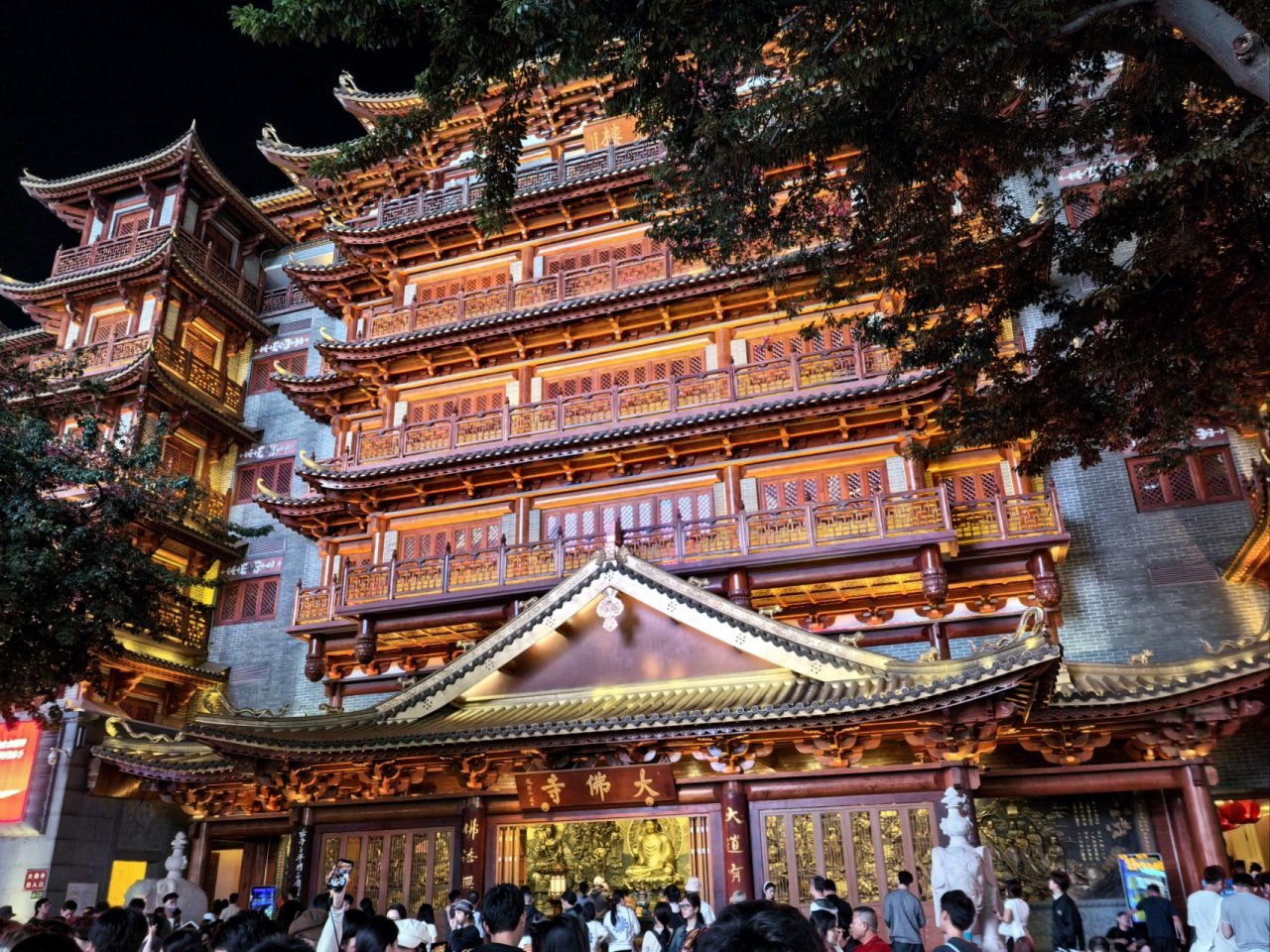 ⑥北京路&大佛寺:北京路那一块基本上都是小吃捏,人山人海的,建议下午四五点去,大佛寺在北京路里面,晚上开了灯还是蛮好看滴