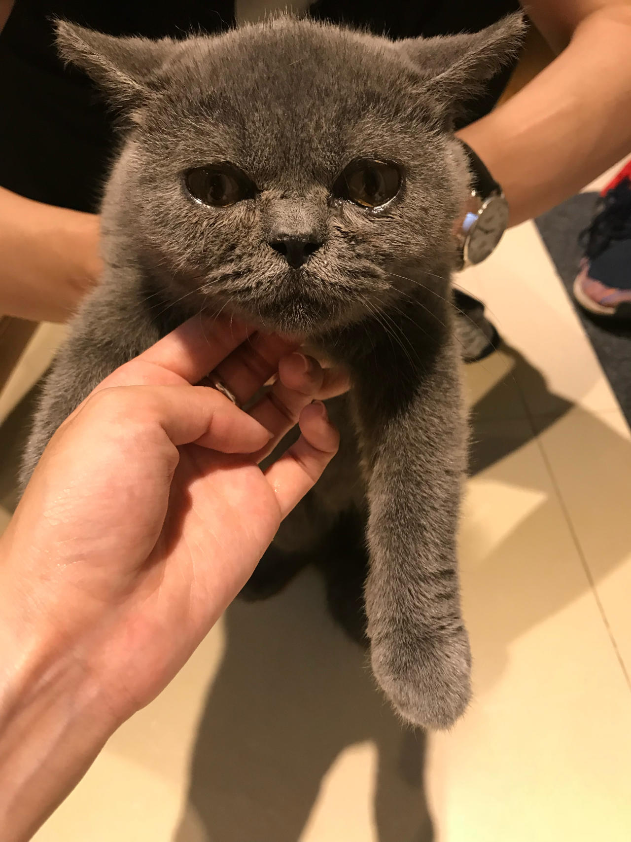 灰不拉几是自己坐着滴滴快车来的,接到它我们直接去了医院。猫癣、耳螨、猫鼻文,眼睛和肠胃也都不太好,毛病倒是挺全乎,我在医院和老婆打趣说你看便宜没好货吧。老婆说咱们买它不是因为便宜,是想救它,我说没毛病给他治。治疗费 2000+元。后来我告诉灰不拉儿,你不是400元的小猫,你身价有3000 块了晓得吧。