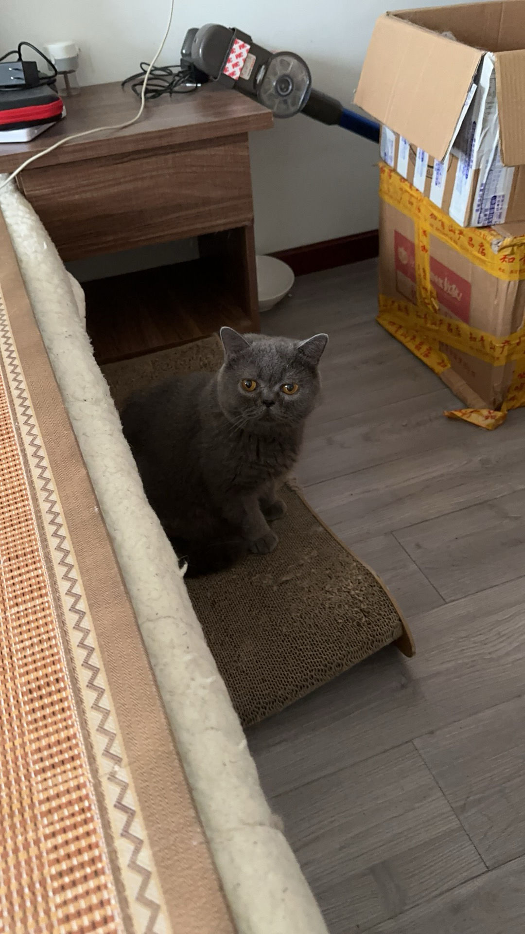 我们有两只猫,英短蓝猫叫灰不拉几,布偶叫灰不拉几的小伙伴,也叫小伙伴。
