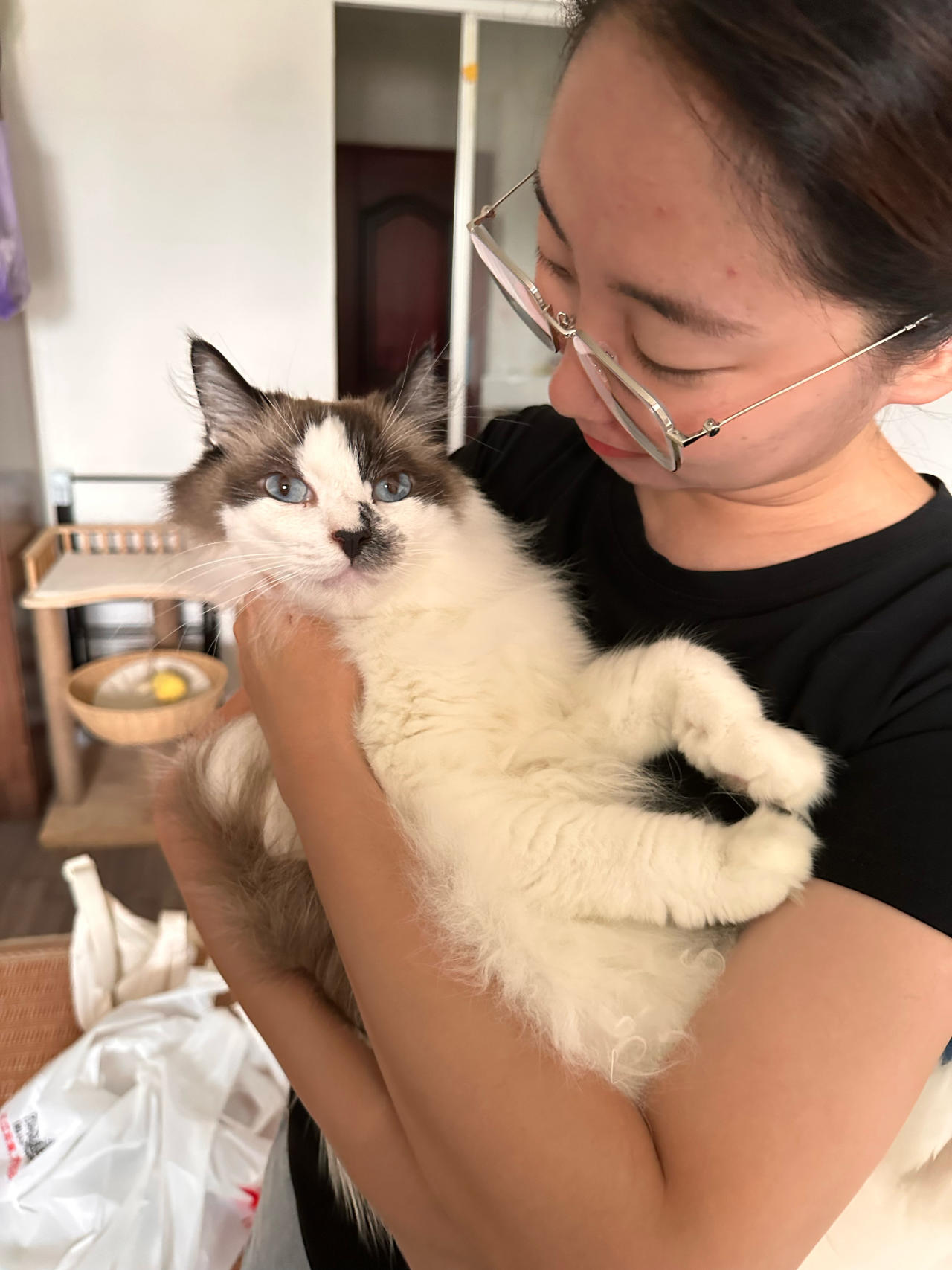 半年后,我们觉得灰不拉几自己在家没意思,所以找朋友又要来一只布偶,取名为灰不拉几的小伙伴,主打一个陪伴。