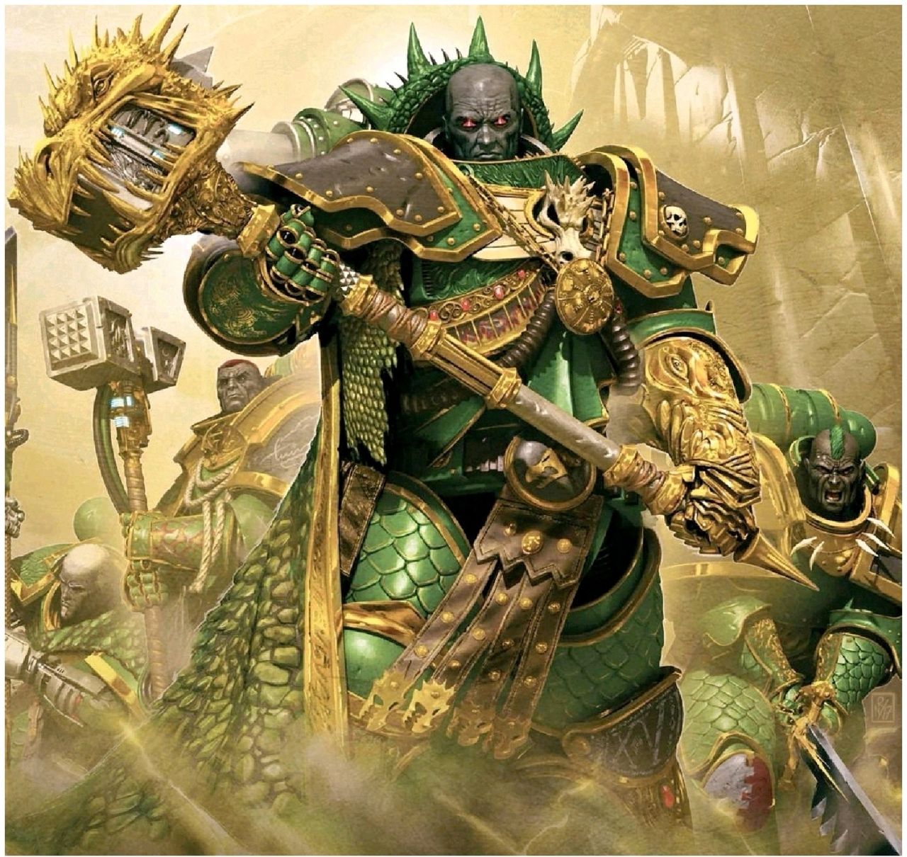 他將夜曲星的鍛造技藝與戰鬥理念融入軍團的訓練體系,將“守護凡人”的信條刻入每一名戰士的基因深處。從此,一支身披綠色戰甲、手持火焰武器的星際戰士戰團,正式登上了銀河的舞臺。