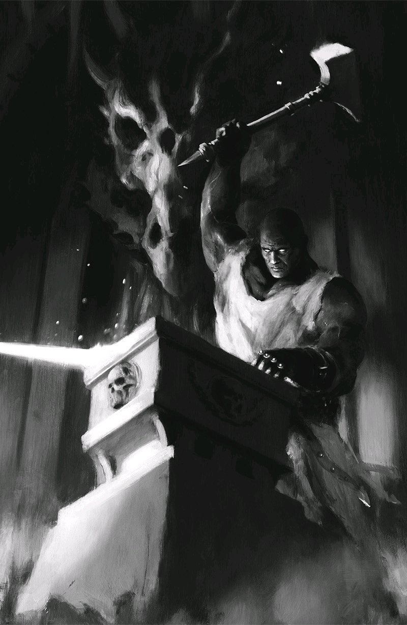 伏爾甘鍛造戰錘、帝皇打造利劍,隨後二人一同登上火山頂峯狩獵。伏爾甘率先獵殺一頭巨型火蜥蜴,而帝皇尋到的火蜥蜴體型遠超伏爾甘的獵物。