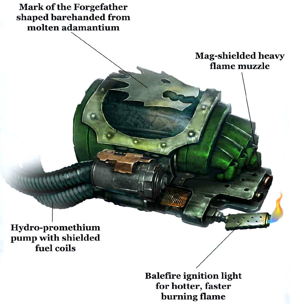 熔爐巨拳(Guantlets of the Forge):一件裝配內置重噴火器的精工鍛造盔甲部件,也是伏爾甘·赫斯坦持有的聖物之一。