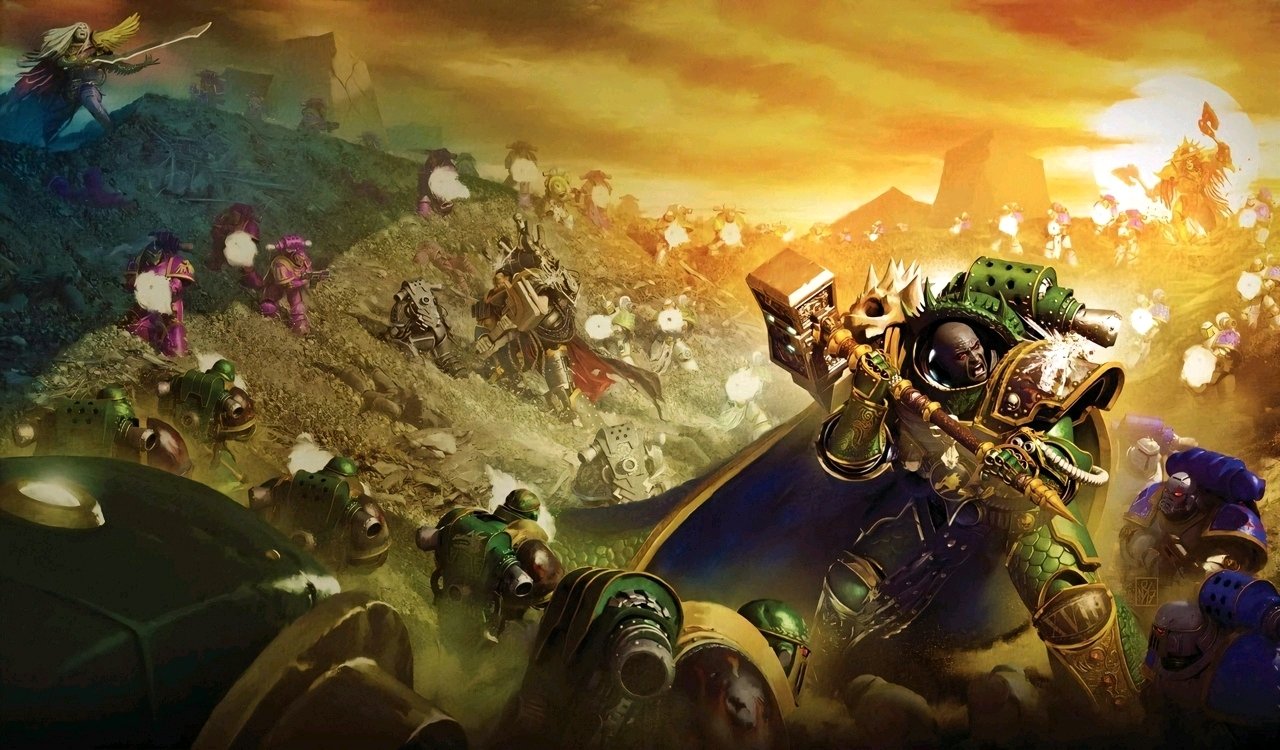 當時,伏爾甘率領火蜥蜴軍團,與鋼鐵之手、暗鴉守衛組成忠誠派聯軍,討伐叛亂的荷魯斯軍團。然而,他們卻陷入了叛軍的重圍——四倍於己的叛軍,如同潮水般向忠誠派的陣地發起衝鋒。
