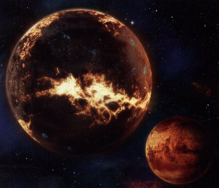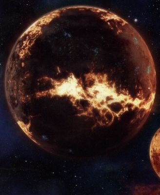 其地表之上,噴發的火山口如同巨人的怒目,流淌的岩漿河蜿蜒成熾熱的血脈,遮天蔽日的火山灰讓白晝淪爲永夜,強烈的地質輻射與極端的溫差,足以將任何未經防護的生命化爲灰燼。