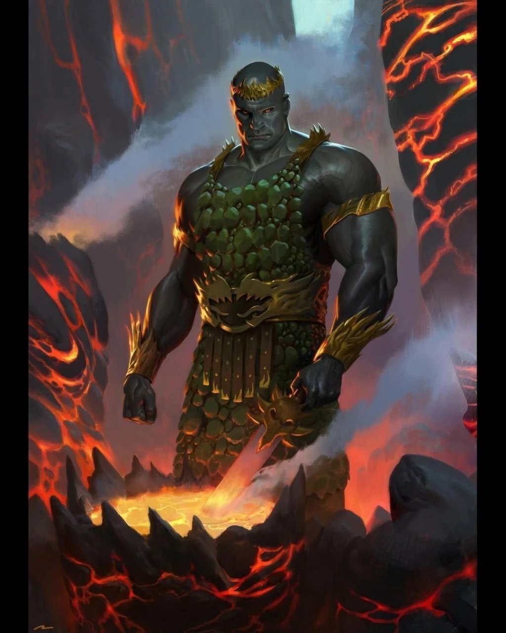 當黑暗靈族的先頭部隊衝進隧道時,伏爾甘點燃了炸藥,噴湧的岩漿與爆炸的衝擊波瞬間吞噬了數百名入侵者;當敵方的載具部隊試圖突破堡壘時,他率領着最勇猛的青年,揮舞着鐵錘與熔岩鍛鑄的長矛,從側翼發起衝鋒,硬生生將鋼鐵戰車掀翻在地。