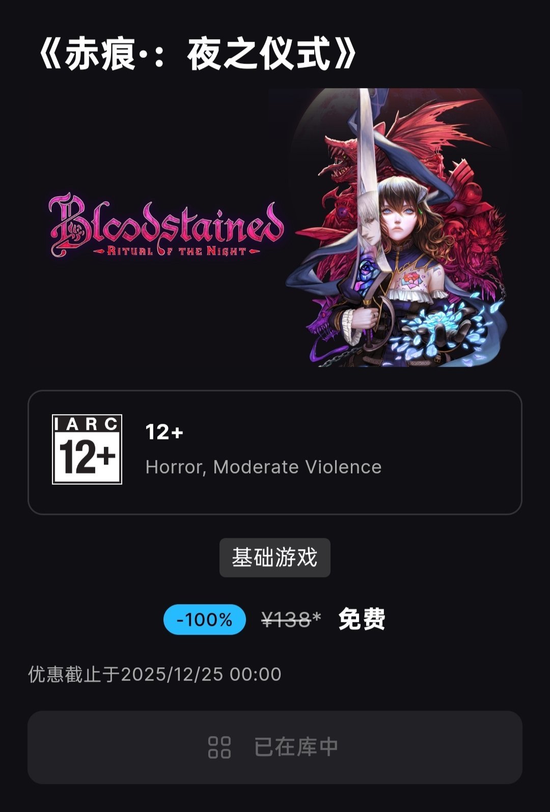 好家伙,恶魔城玩家狂喜呀,这个游戏我超喜欢的,感觉这个游戏是这几天送的个人最喜欢的一款了,昨天还说呢,今天估计会送个大的,没想到还真是,估计明天大概率也是会来个大的哦