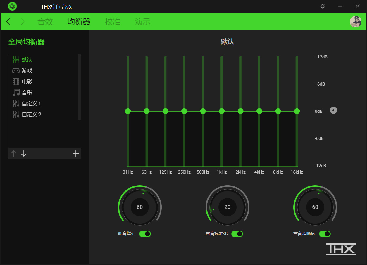 後面換上Type-C轉接頭,聲音表現提升了好多,試了下預設的遊戲EQ,我說實話不太推薦,默認EQ的表現要更好,遊戲EQ聽感上增強了低頻,讓槍聲和腳步聲更突出,但整個的偏悶感仍然有,而默認EQ會正常許多,環境音不悶也不糊了,也幾乎聽不到底噪,但低頻這塊就沒那麼突出,我也是簡單在默認EQ上開啓了低音增強+聲音標準化+聲音清晰度,按60、20、60的數值調了,進遊戲裏槍聲和腳步聲比較突出,而且聲音的定位感也有了,所以大夥在入手戰錘狂鯊V3後發現聲音糊先別急着退,先去網上找找分享的EQ方案試着調調,我目前按下圖簡單調的聽感上要好很多。