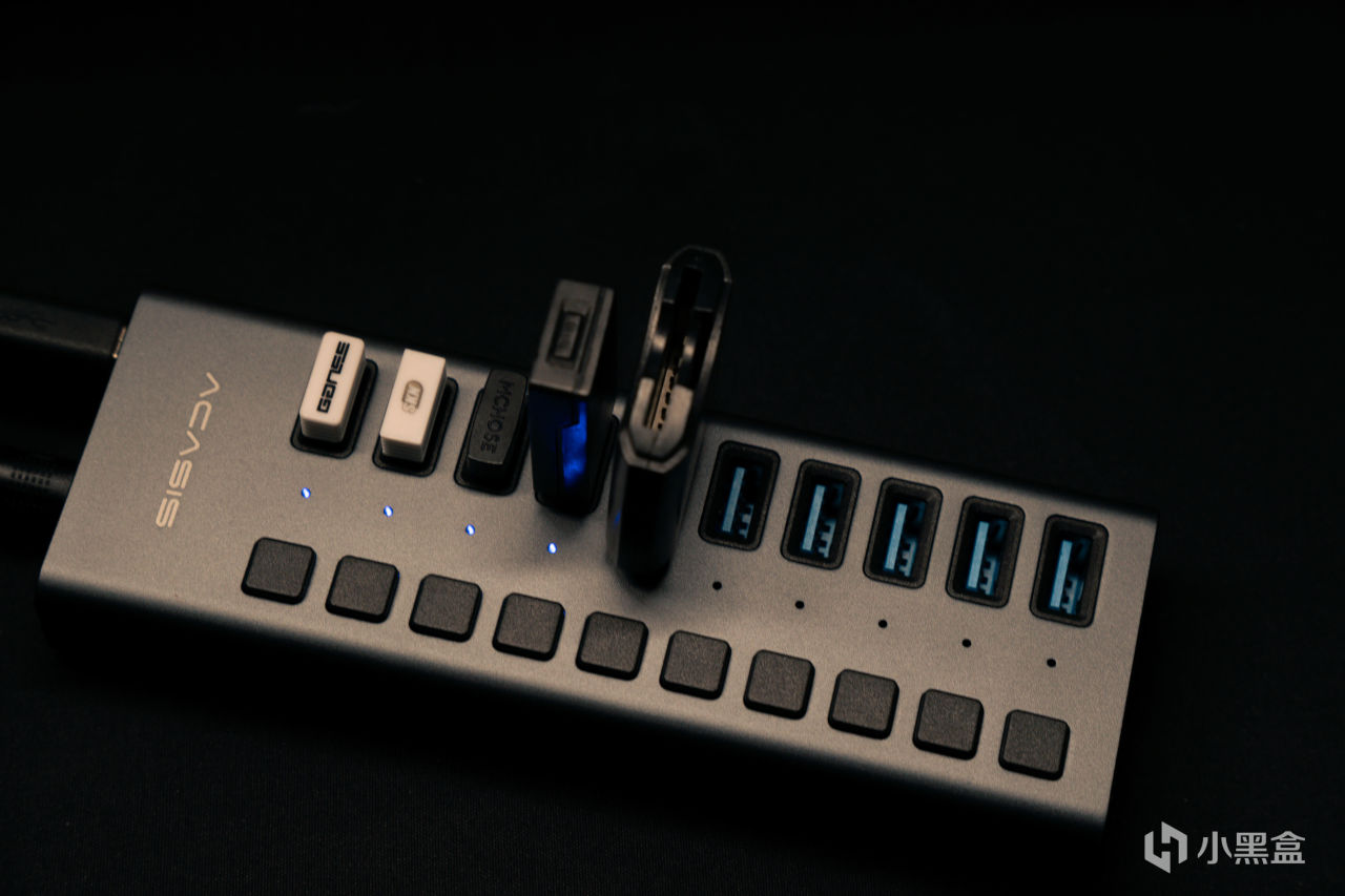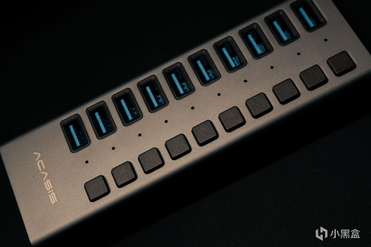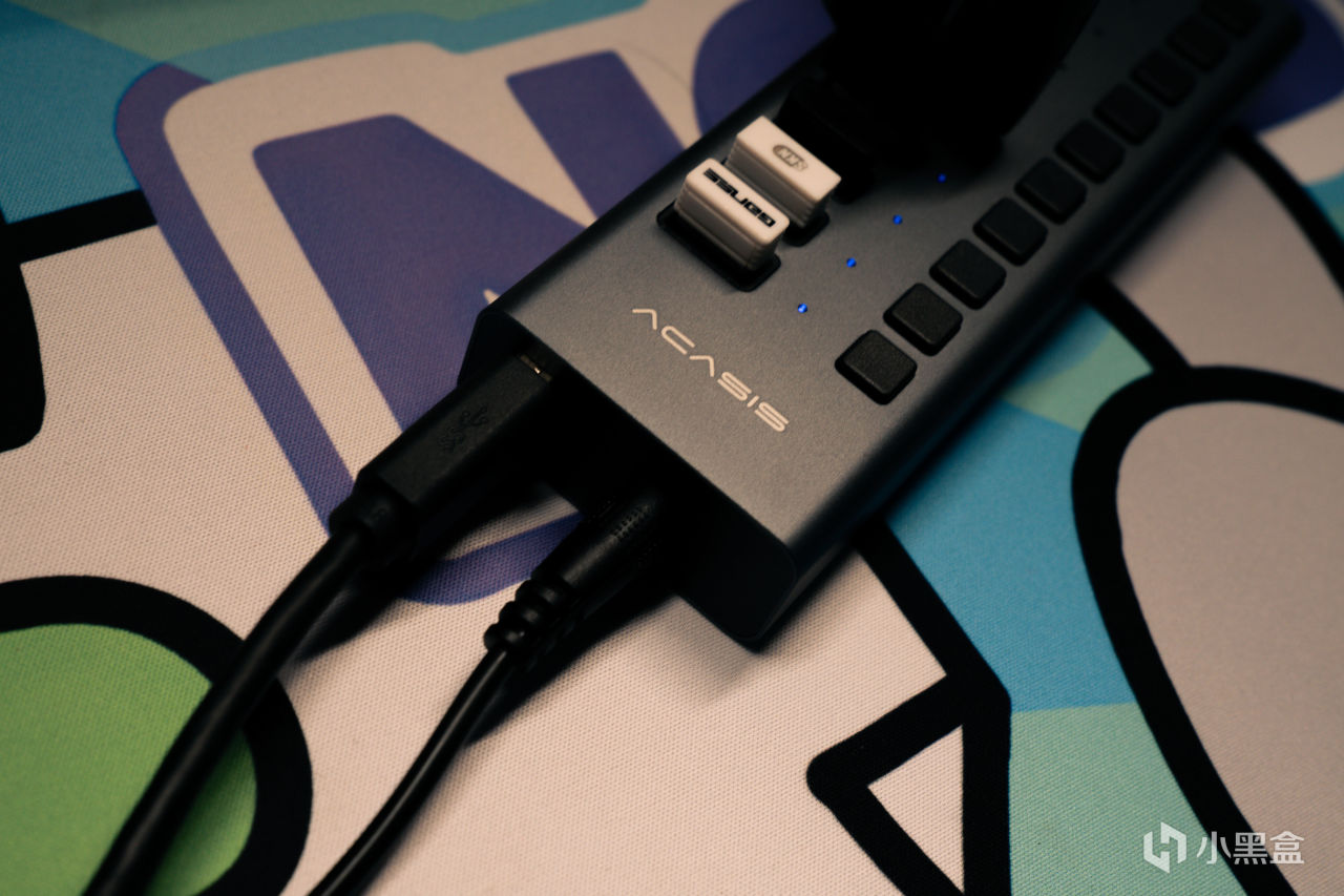 像是阿卡西斯的扩展坞就不错,最少的有7口,多了有10、16、20口,就算你是键鼠手柄爱好者有一堆外设都够你全部插上去,总有一个够你用,不同的接口也配备了不同的电源输入,就算你每个口都插移动硬盘也能全给你带的起来(不过现在这硬盘价格能插这么多移动硬盘那太有实力了)!