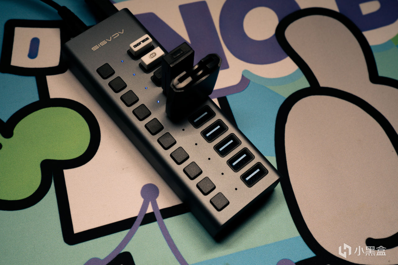 并且这个比起普通的扩展坞还有一个大优势, 那就是每个USB口有单独的开关,不需要的时候可以直接把USB接口断开而不用拔掉,可以很好的保护USB接口,再用的时候也不用来回翻找。
