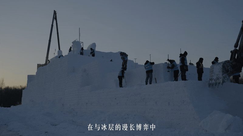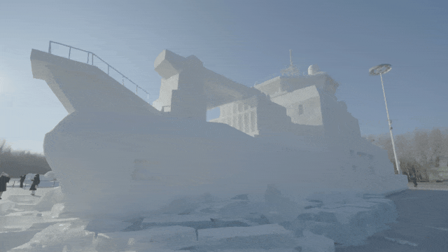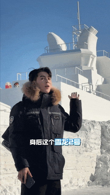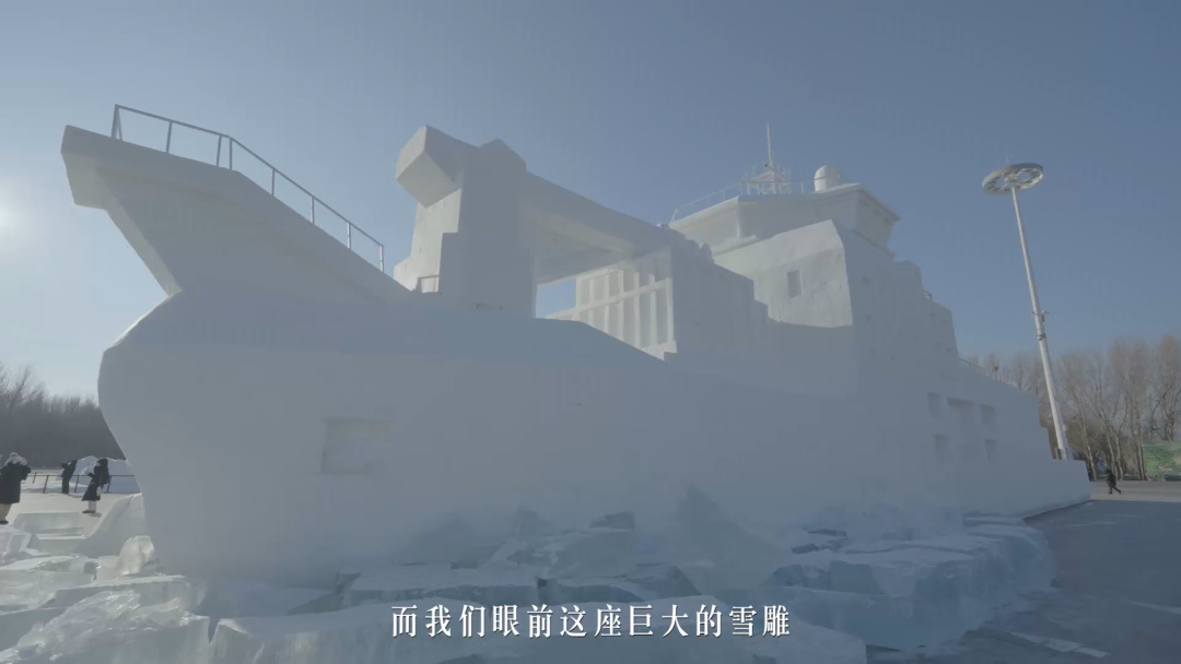 這姑娘在零下十幾度的極寒環境裏,與哈爾濱當地老師傅們一起,硬生生用雪雕出了一艘 42 米長、10 米寬的雪龍 2 號。