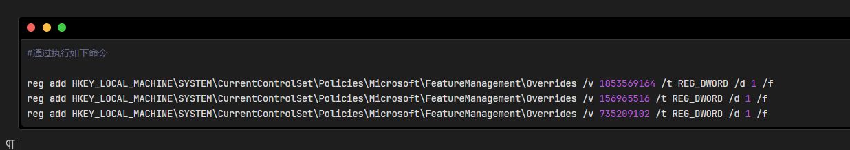 转到如下注册表路径并添加新项 (DWORD32):HKEY_LOCAL_MACHINE\SYSTEM\CurrentControlSet\Policies\Microsoft\FeatureManagement\Overrides