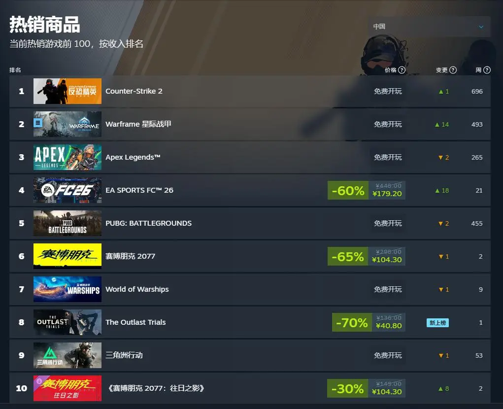 遊戲也在Steam暢銷榜上攀登全球第二和國區第二的驚人成績,甚至超越了Apex和PUBG等大DAU遊戲。