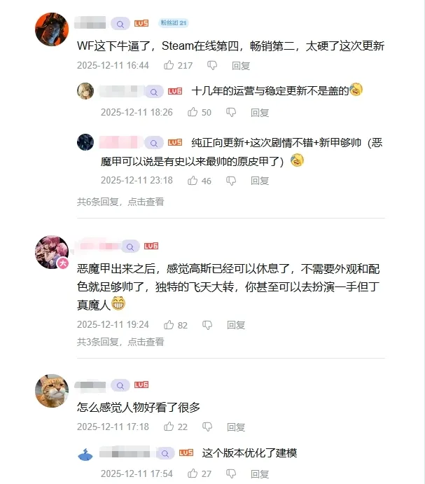 這種外溢式的玩梗與互動,不僅成爲玩家間默契的暗號,更在不經意間向外界傳遞着Warframe社區獨特的文化氛圍與身份認同,使遊戲的影響力以更自然、更生活化的方式滲透到更廣泛的互聯網空間中。