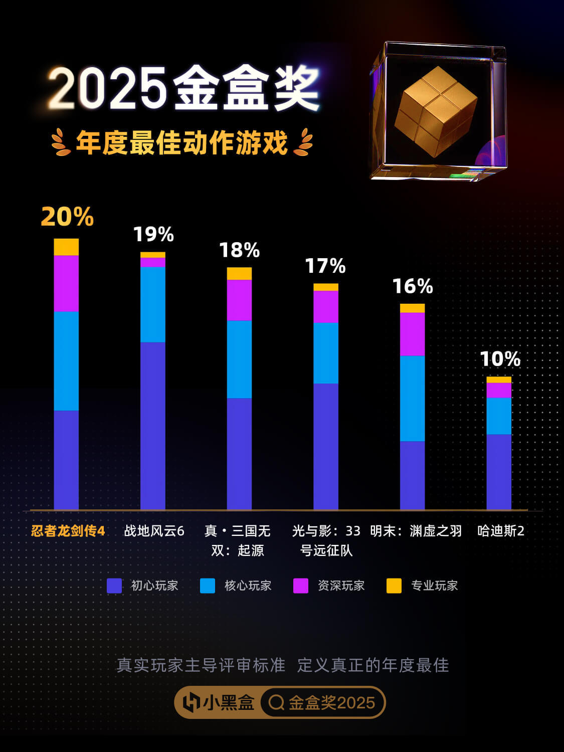 2025小黑盒金盒奖|年度最佳动作游戏《忍者龙剑传4》 2025-12-24 PC游戏 恭喜《忍者龙剑传4》荣获2025金盒奖——年度最佳动作游戏!您可通过左划图片查看此奖项的详细投票占比数据 更多游戏资讯请关注:电玩帮游戏资讯专区 电玩帮图文攻略 www.vgover.com