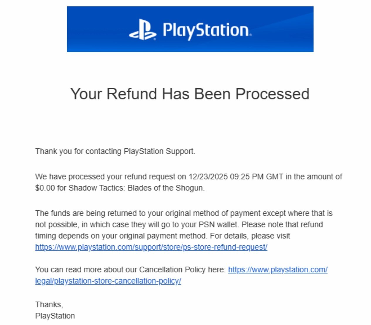近日索尼开始对两个月前因PS Store临时工操作而免费领取《影子战术:将军之刃》的玩家进行“秋后算账”,向这些玩家发送了强制退款邮件。
