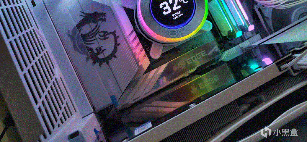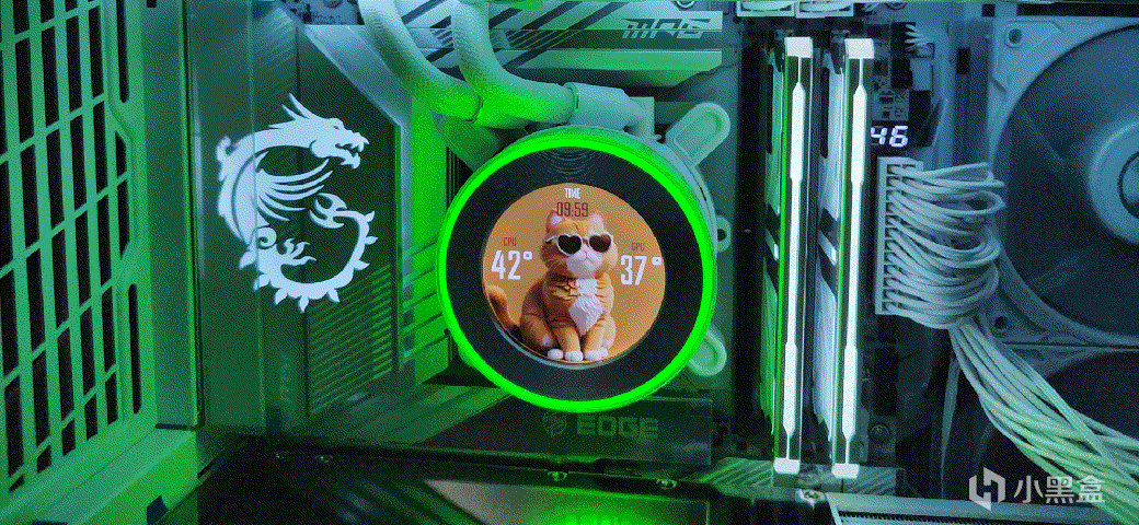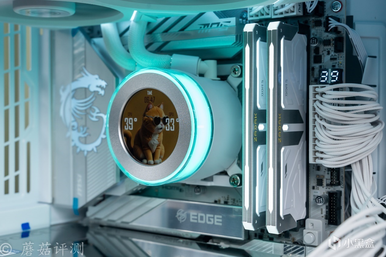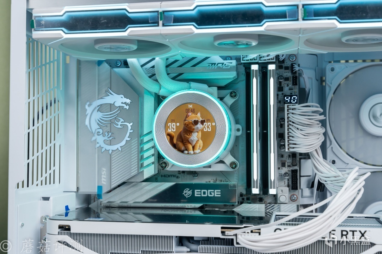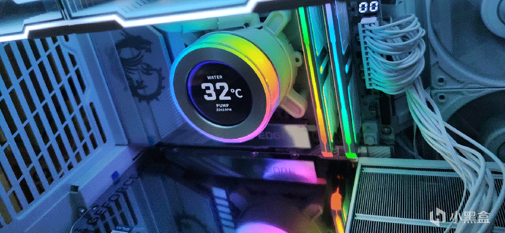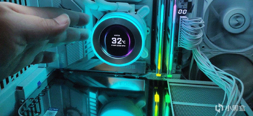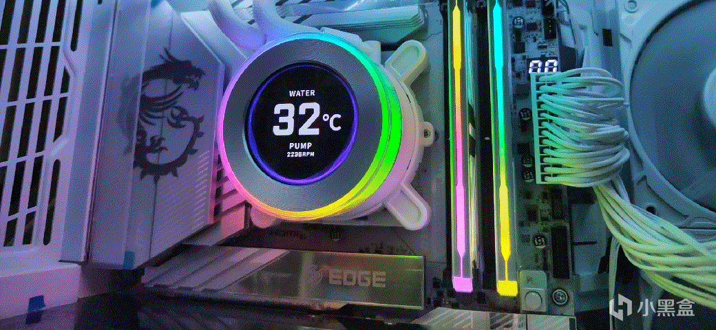 ▼水冷頭屏幕四周有一圈環形RGB燈帶,外面還有一層透明外殼,整體的燈效觀感很不錯。