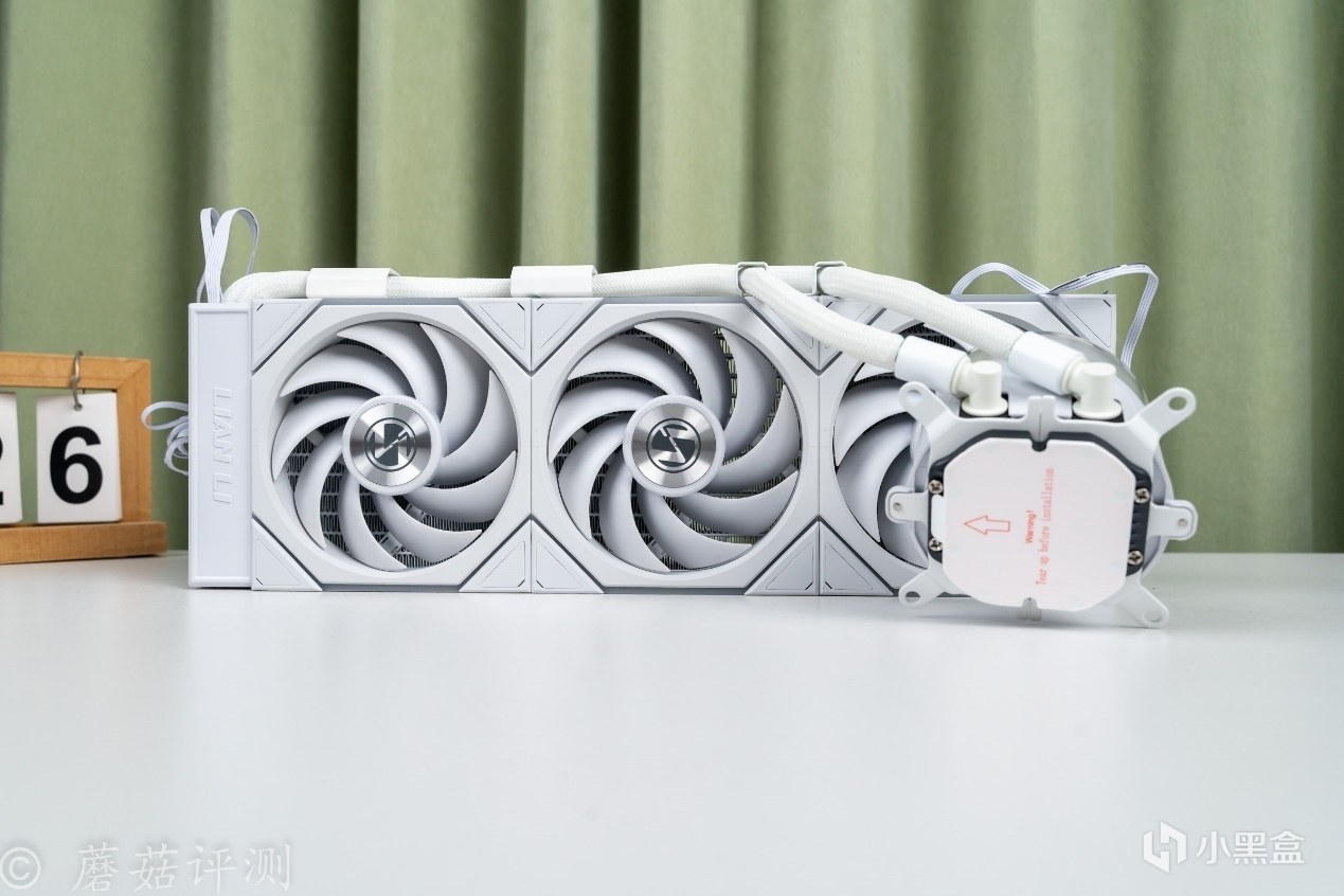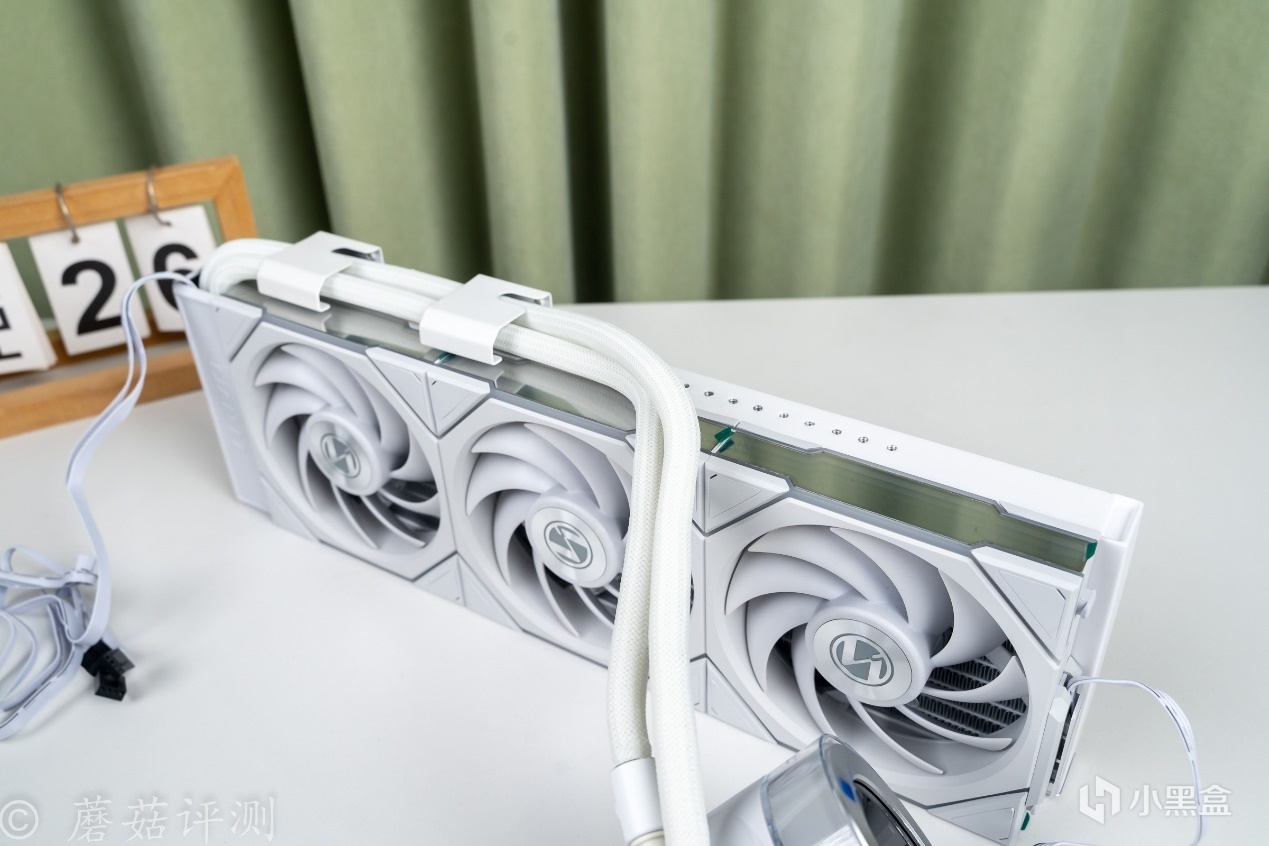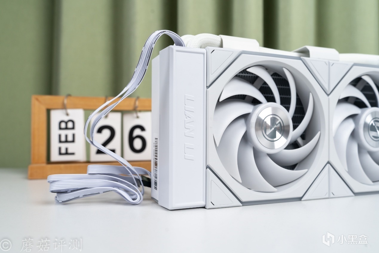 ▼水冷整體採用白色配色,冷排風扇是聯力自家的積木風扇4代,顏值、參數和靜音效果均非常出色。