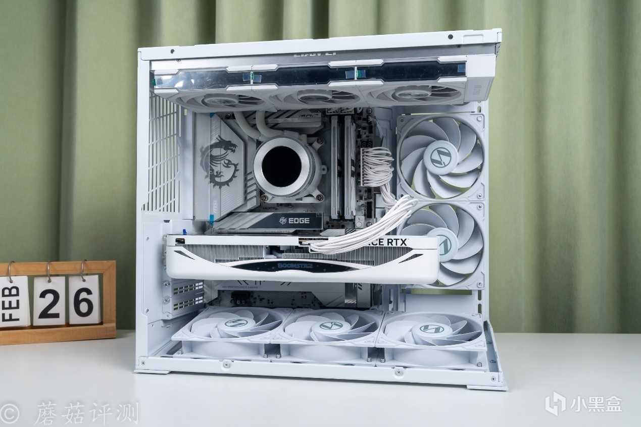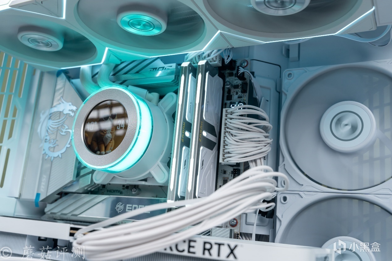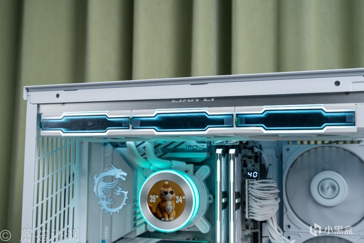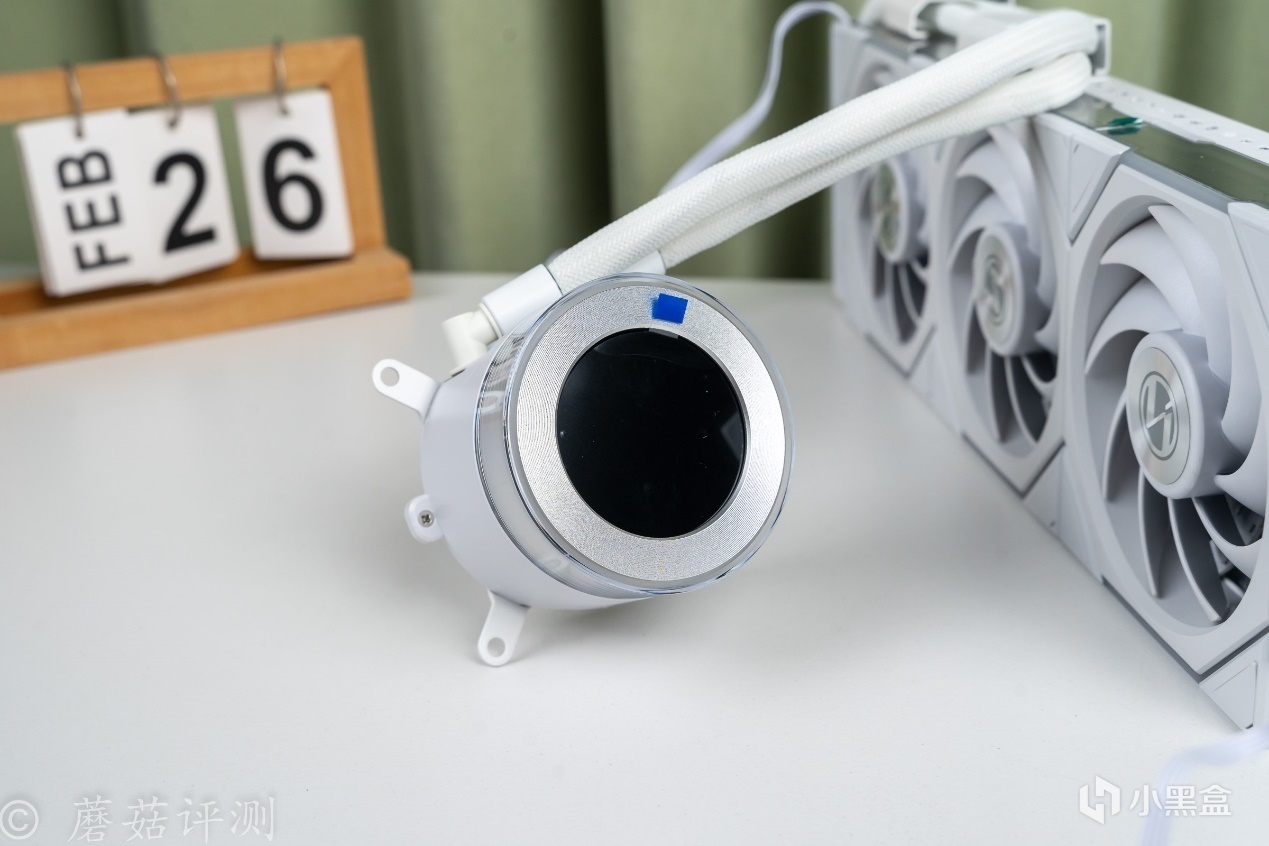▼水冷整體採用白色配色,冷排風扇是聯力自家的積木風扇4代,顏值、參數和靜音效果均非常出色。
