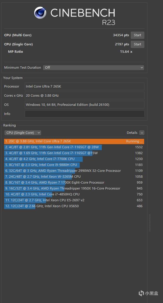 ▼跑個CineBench R23,單線程得分2197、多線程得分34354,分數非常不錯。