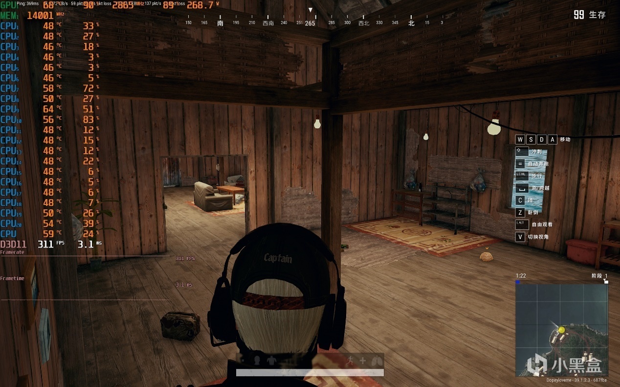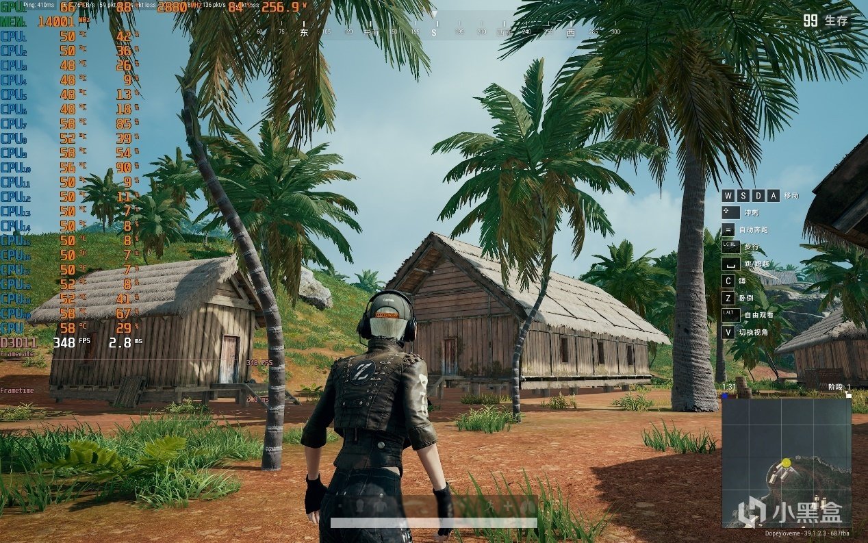 ▼遊戲實測,絕地求生PUBG,2K分辨率全高畫質,室外遊戲幀數在348幀左右,非常流暢。
