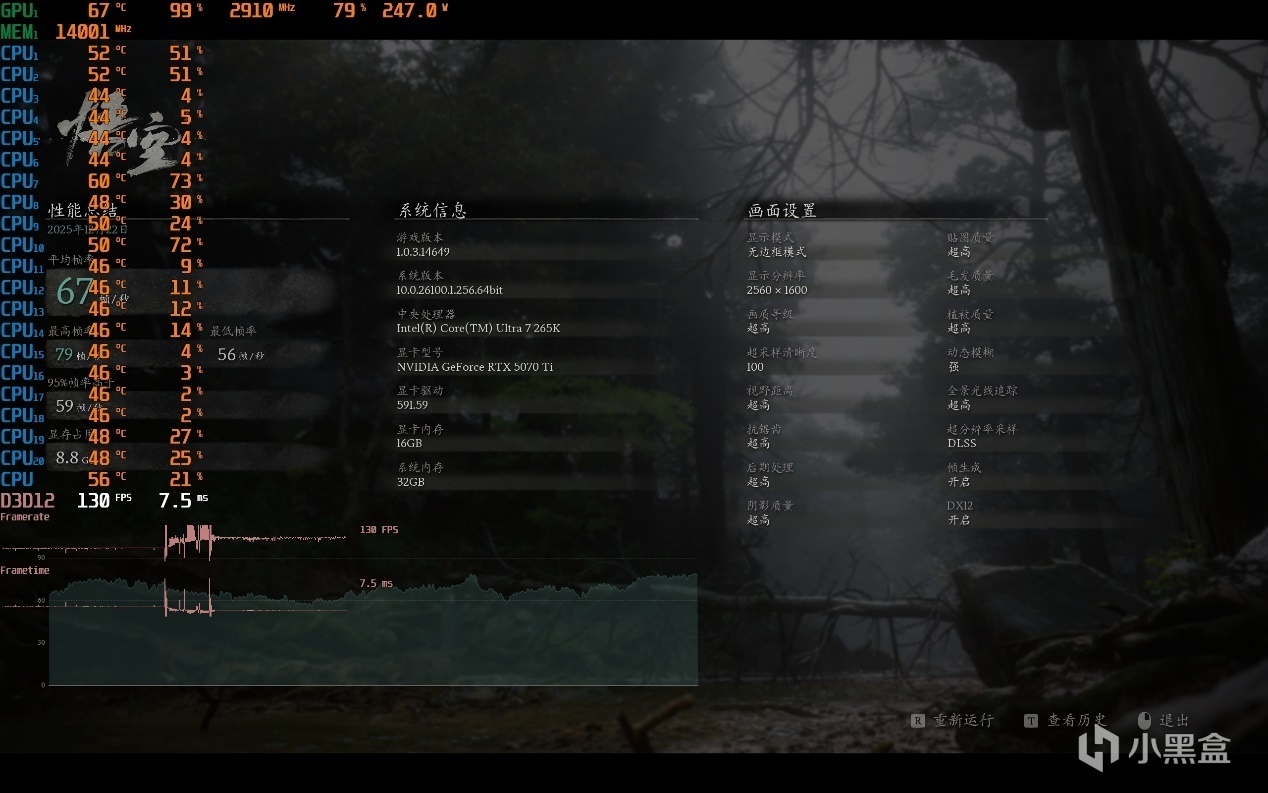 ▼最後整體的平均遊戲幀數在67幀左右,非常流暢,對於黒神話悟空這種遊戲來說。