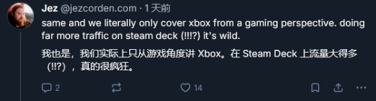 Windows Central的执行编辑Jez Corden也认同Alex Battaglia提出的问题:“一样,我们几乎只从游戏内容的角度来报道Xbox。结果反而是Steam Deck(!!!)带来的流量多得多,真的很离谱。遗憾的是,Xbox相关内容带来的点击量,已经不足以支撑运营成本了。”