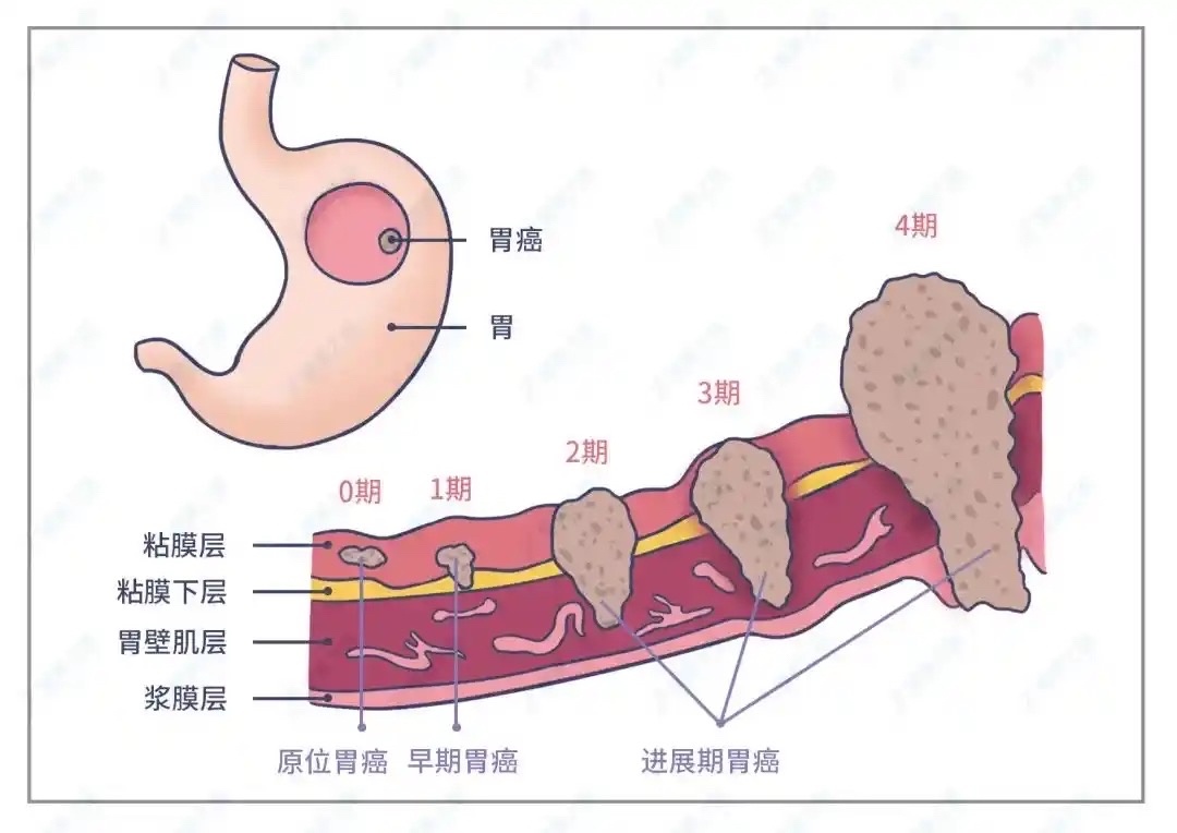 慢性浅表性胃炎 → 萎缩性胃炎 → 肠上皮化生 → 异型增生 → 胃癌。