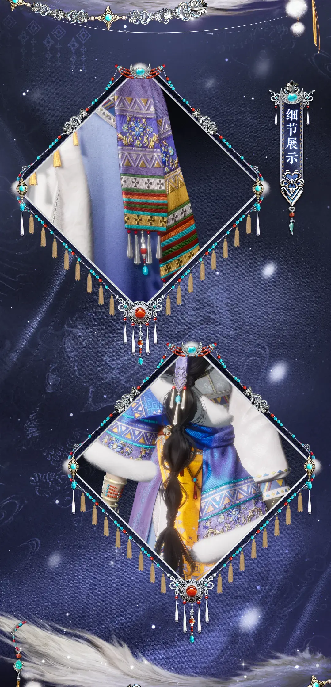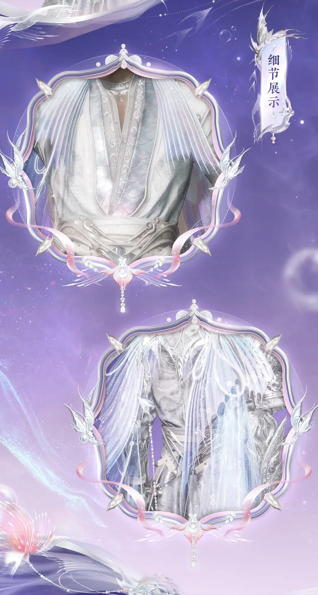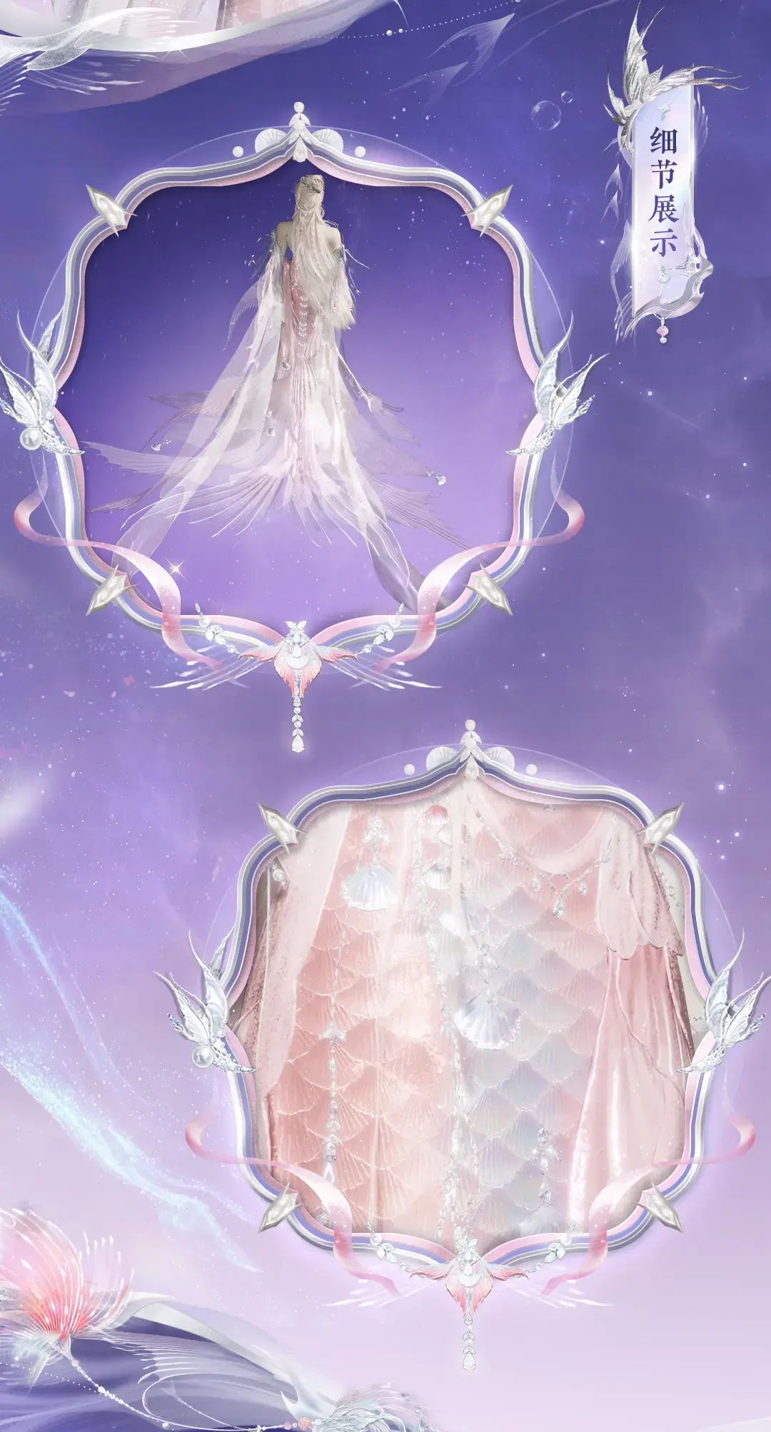 12月27日版本更新后限时上架,支持上下装拆分和染色,购买后附赠主角动态头像【灵鲛织梦】。