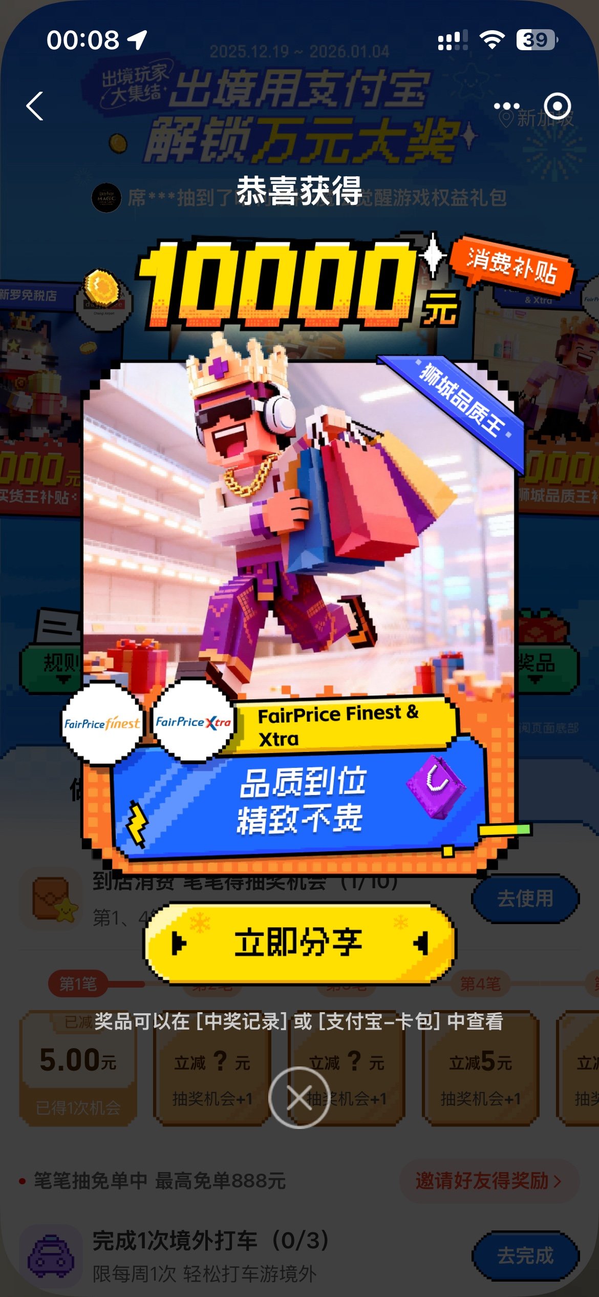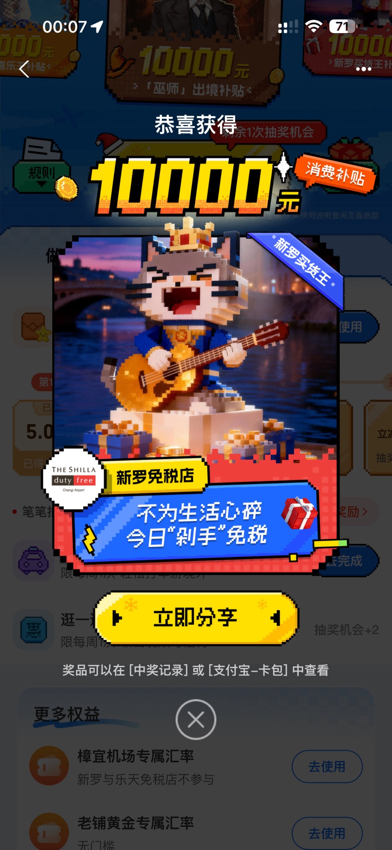 最近境外消费能抽1w的免单消费券,老婆休假来新加坡找我玩正好一人抽到1w,其中fairprice超市的购物券换成1w的礼品卡直接83折出给本地人了,新罗免税店只能出关买化妆护肤品,今天正好去巴厘岛玩直接离境买了1w,买到一下午最后头都晕了,差点没赶上飞机。