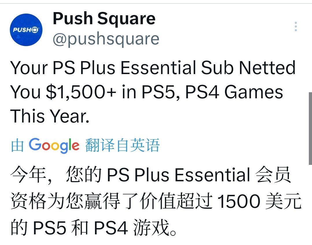根據pushsquare的統計,2025年PS Plus Essential會員爲美服用戶提供了39款PS5和PS4遊戲,總零售價值超過1500美元,約10521人民幣。這意味着,平均每款遊戲的零售價值約爲38.46美元。相比之下,年度訂閱費用僅爲79.99美元,從純零售價格的角度看,回報率高達1875%。