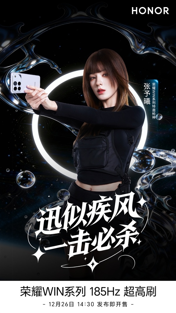快科技12月25日消息,榮耀宣佈張予曦成爲榮耀WIN系列特邀槍神,該機將於12月26日正式發佈。