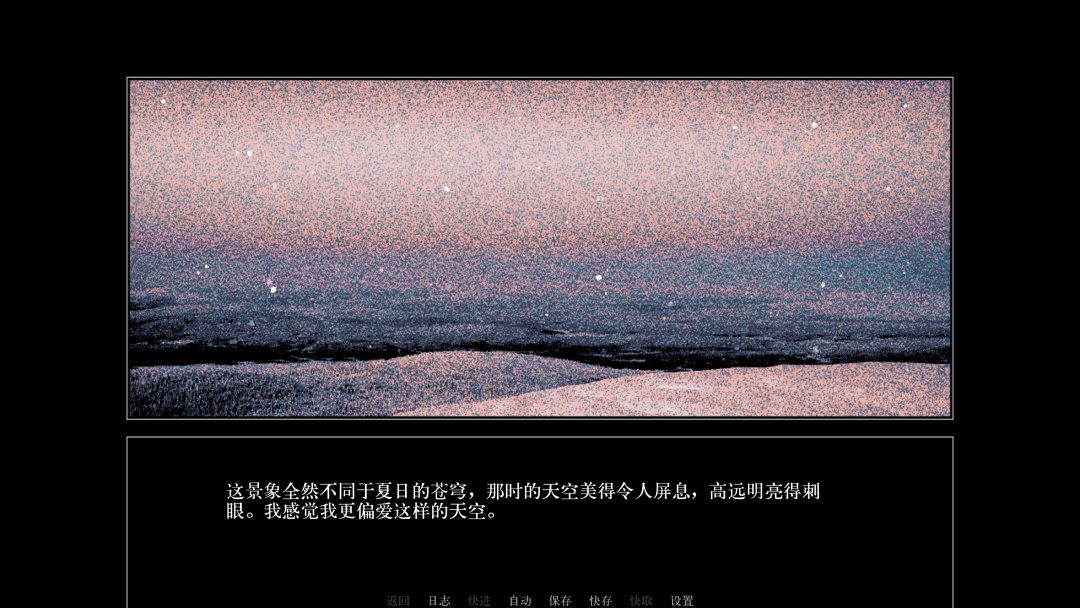 另外,遊戲的文字彈出方式也很特別。傳統視覺小說的彈出方式,是整段彈出,但這個遊戲是按照節奏,把段落分成一塊一塊彈出的。因爲它以女主的第一視角敘事,這種方式就是在模仿她的意識流,能讓你看出她的思維過程。