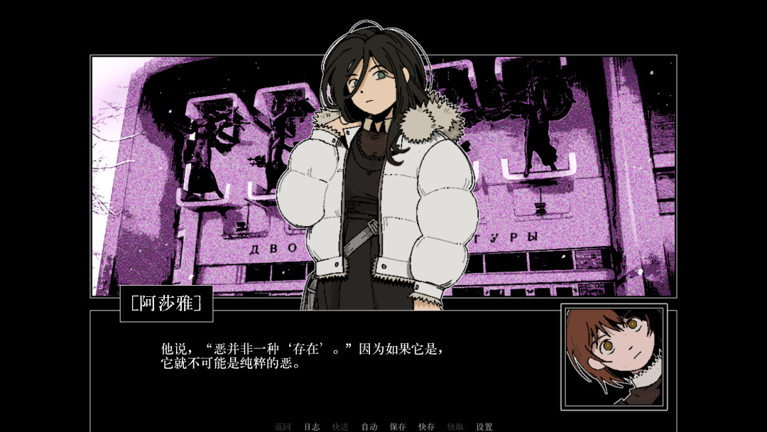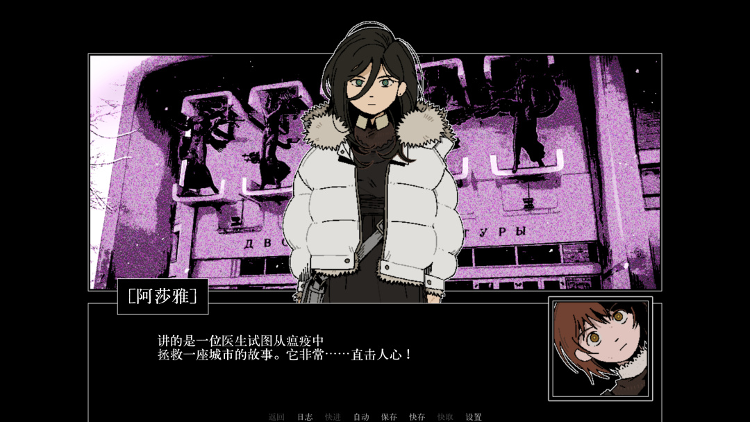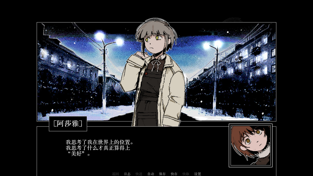 這個遊戲彷彿在說,藥物無法拯救這羣女孩,只有愛和詩歌可以。因爲這裏沒有其他東西,除了樓宇間的雪和那無垠的凍土外,空無一物。這個小城太冷了,文字需要充當太陽的功效。但它畢竟無法核聚變,只能發出稀薄的暖意。